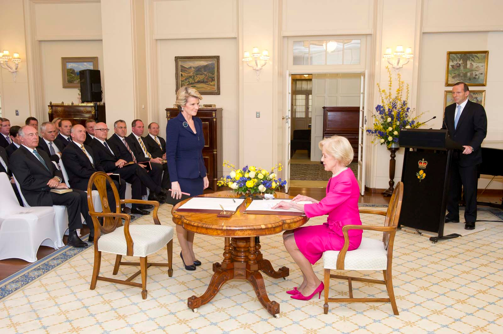 The Hon Julie Bishop MP being sworn in as Minister for Foreign Affairs by Governor-General Quentin Bryce. 18 September 2013.