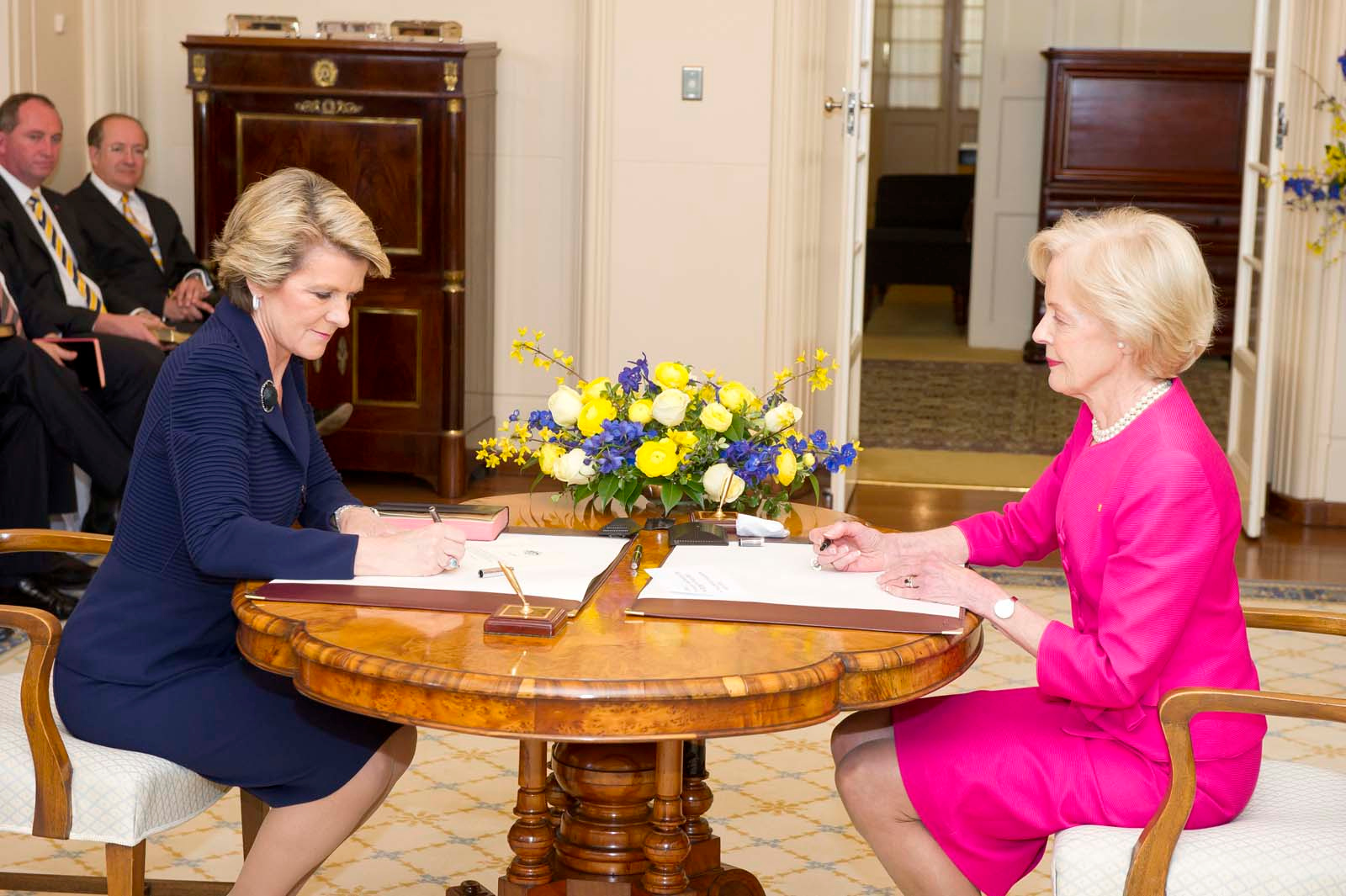 The Hon Julie Bishop MP being sworn in as Minister for Foreign Affairs by Governor-General Quentin Bryce. 18 September 2013.