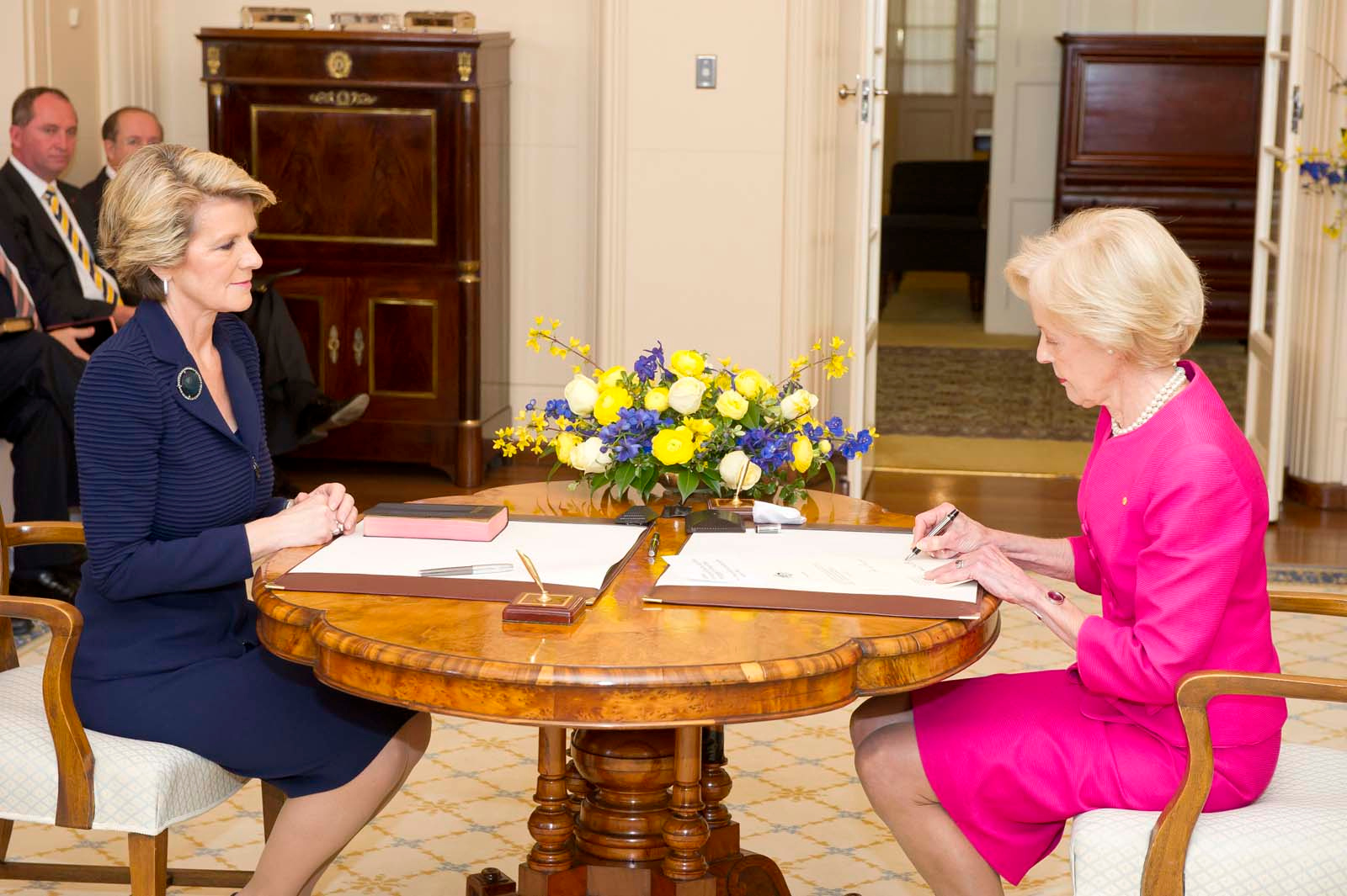 The Hon Julie Bishop MP being sworn in as Minister for Foreign Affairs by Governor-General Quentin Bryce. 18 September 2013.