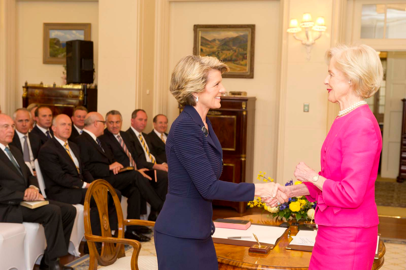The Hon Julie Bishop MP being sworn in as Minister for Foreign Affairs by Governor-General Quentin Bryce. 18 September 2013.