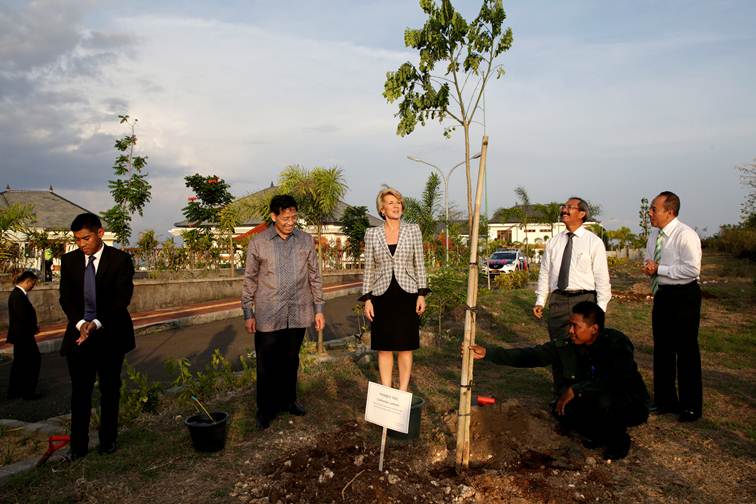 Ms Bishop planted a tree and was given a tour by former Indonesian Foreign Minister Hassan Wirajuda. Photo by Josh Estey/DFA
