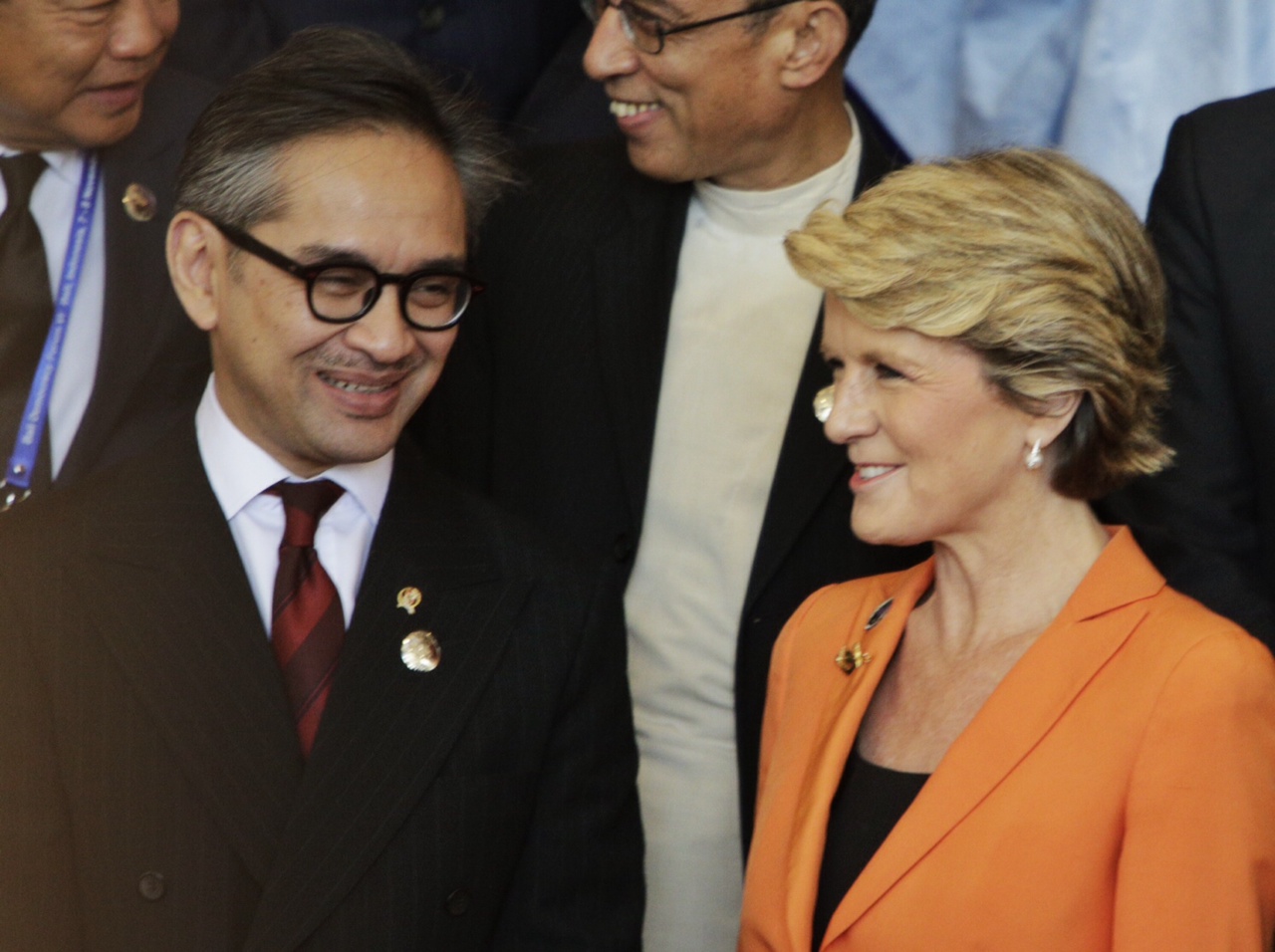 Australia's Foreign Minister Julie Bishop with Indonesia's Foreign Minister Marty Natalegawa at the Bali Democracy Forum, 7 November 2013. Pic: Josh Estey/DFA
