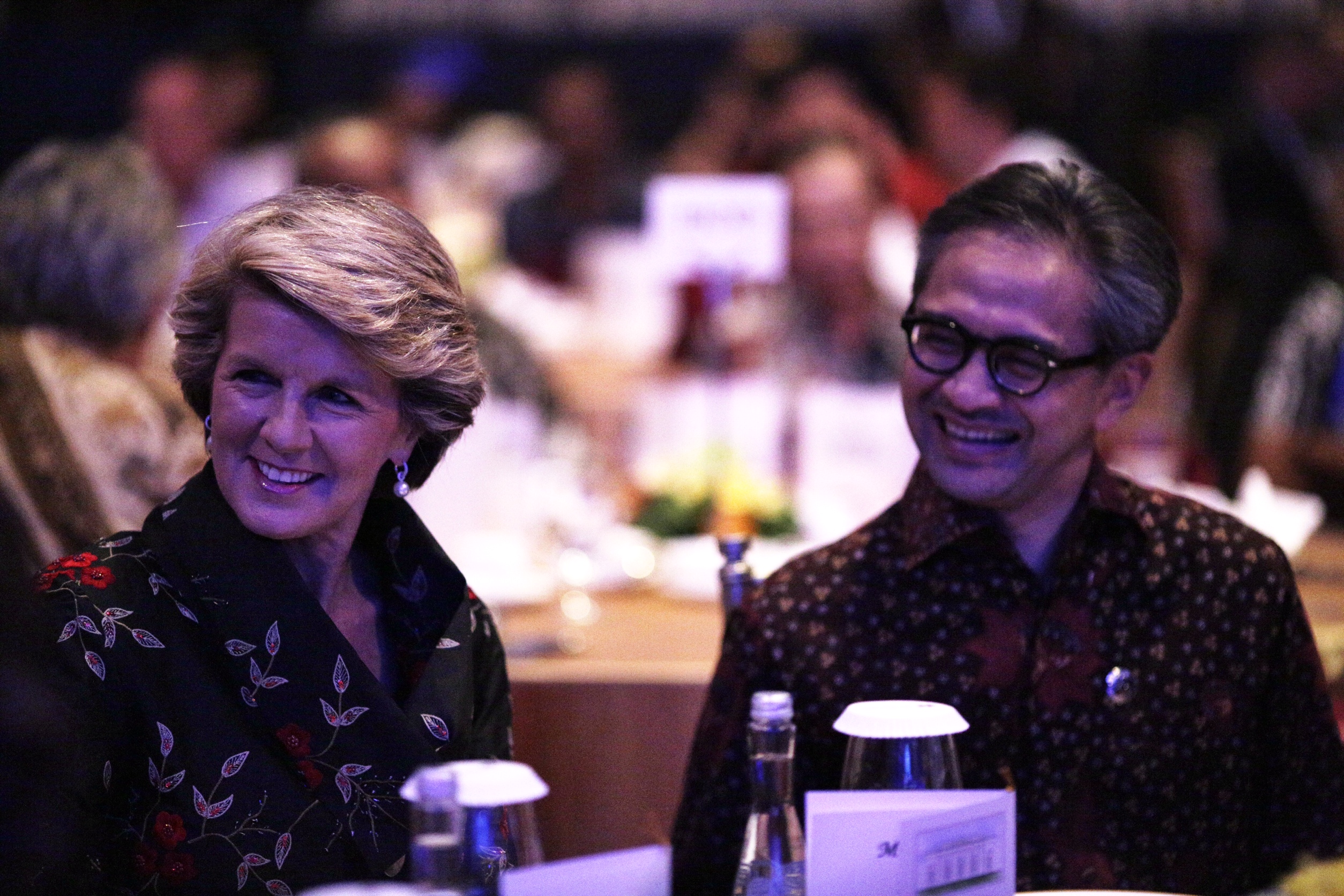 Australia's Foreign Minister Julie Bishop at a dinner hosted by Indonesia's Foreign Minister Marty Natalegawa, 7 November 2013. Pic: Josh Estey/DFA