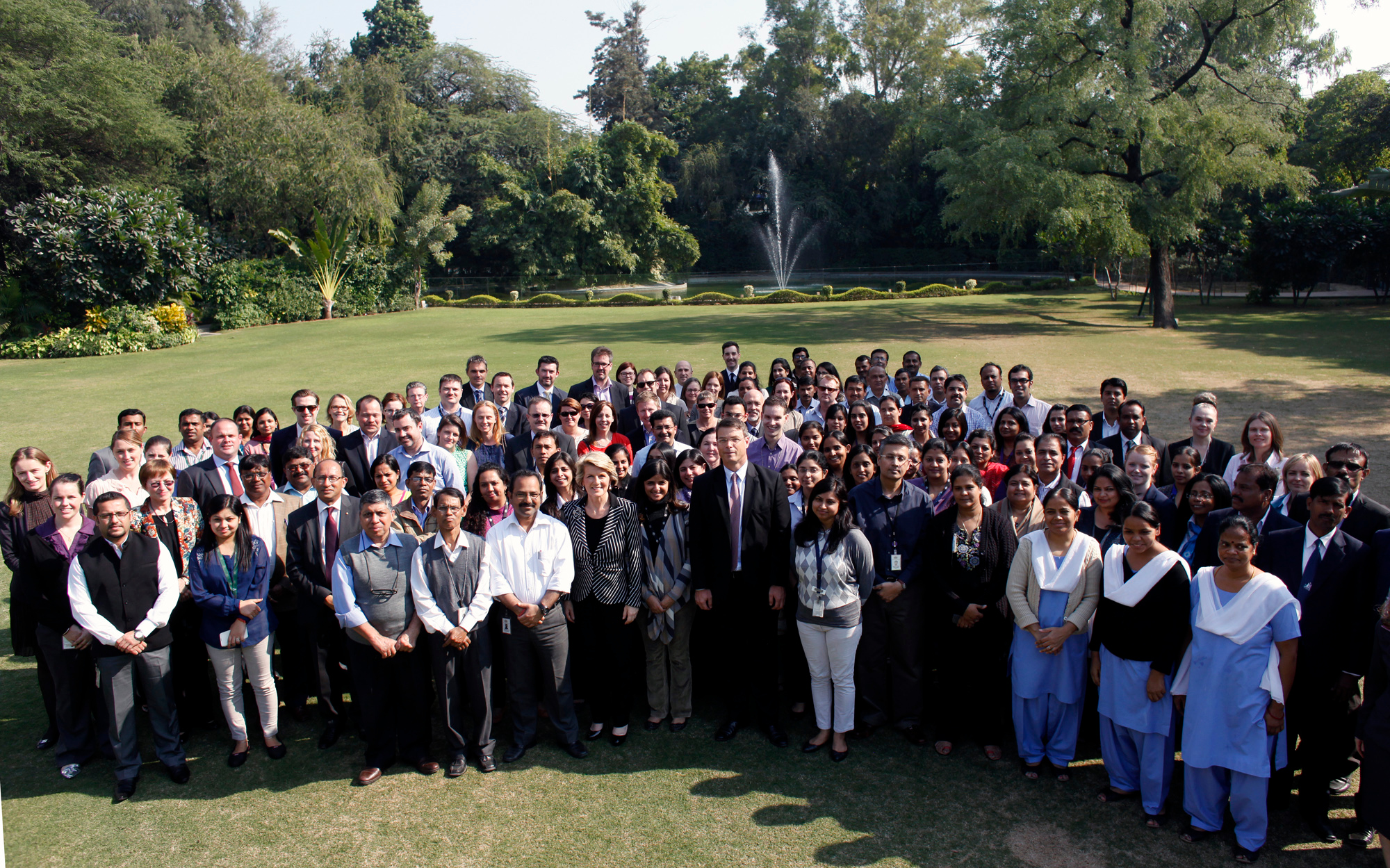 Ms Bishop in a group photo with staff at the Australian High Commission, New Delhi.