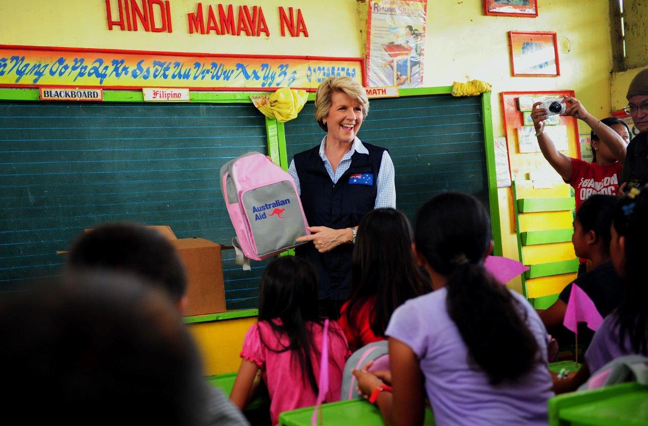 Ms Bishop at a school in Ormoc, Philippines. 8 December 2013