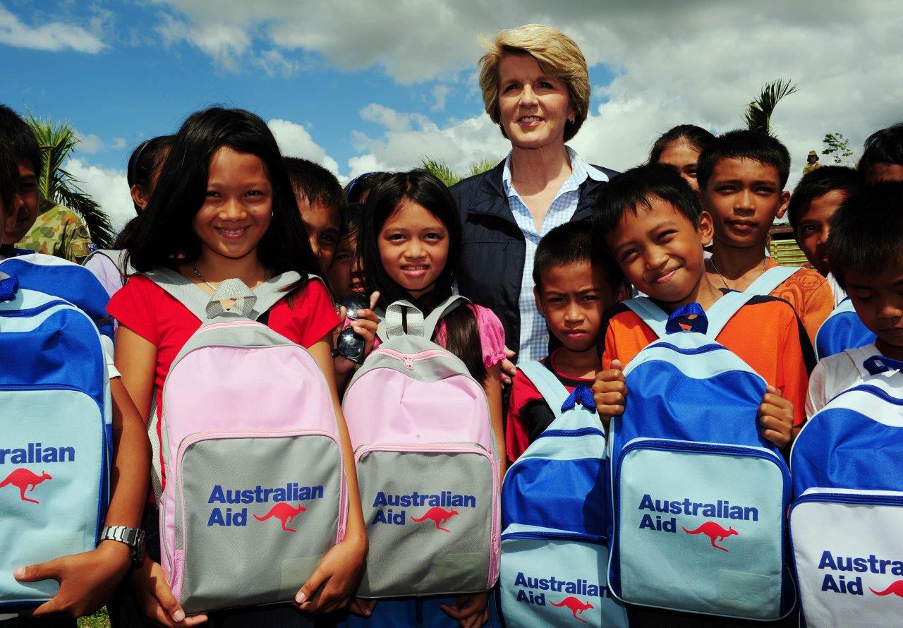 Visiting a school in Typhoon damaged Ormoc, Philippines. 8 December 2013 Credit ADF