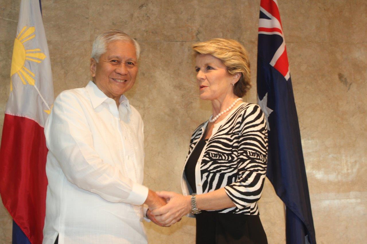 Australia's Foreign Minister Julie Bishop arrives at the Philippines Department of Foreign Affairs to meet with Foreign Secretary Albert del Rosario. 8 December 2013.