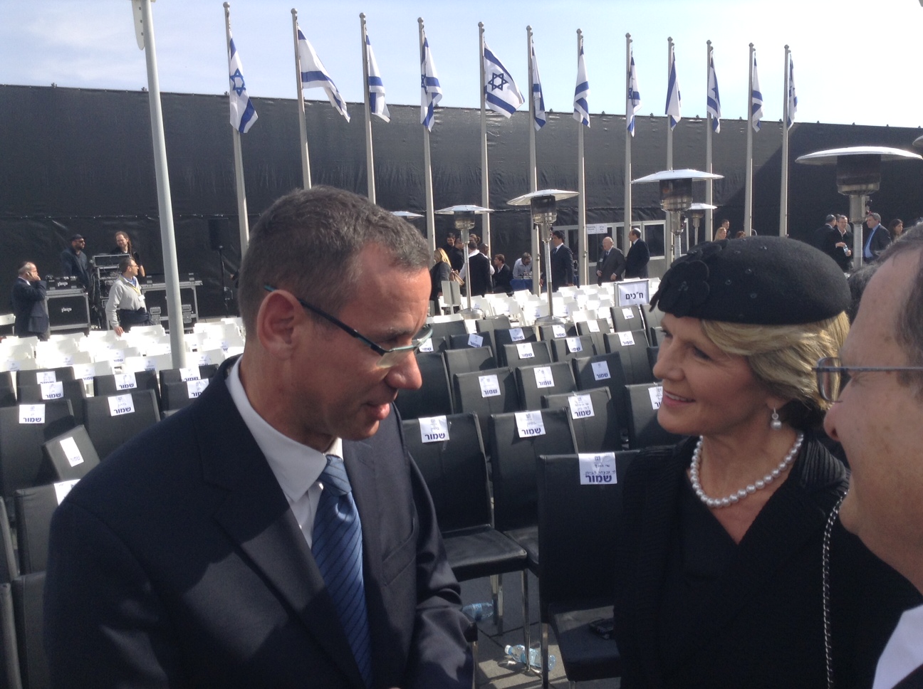 Foreign Minister Julie Bishop with Mark Regev, (Australian-born) spokesperson for Israeli Prime Minister Benjamin Netanyahu, and Israeli Ambassador Shmuel Ben-Shmuel. 13 January 2014