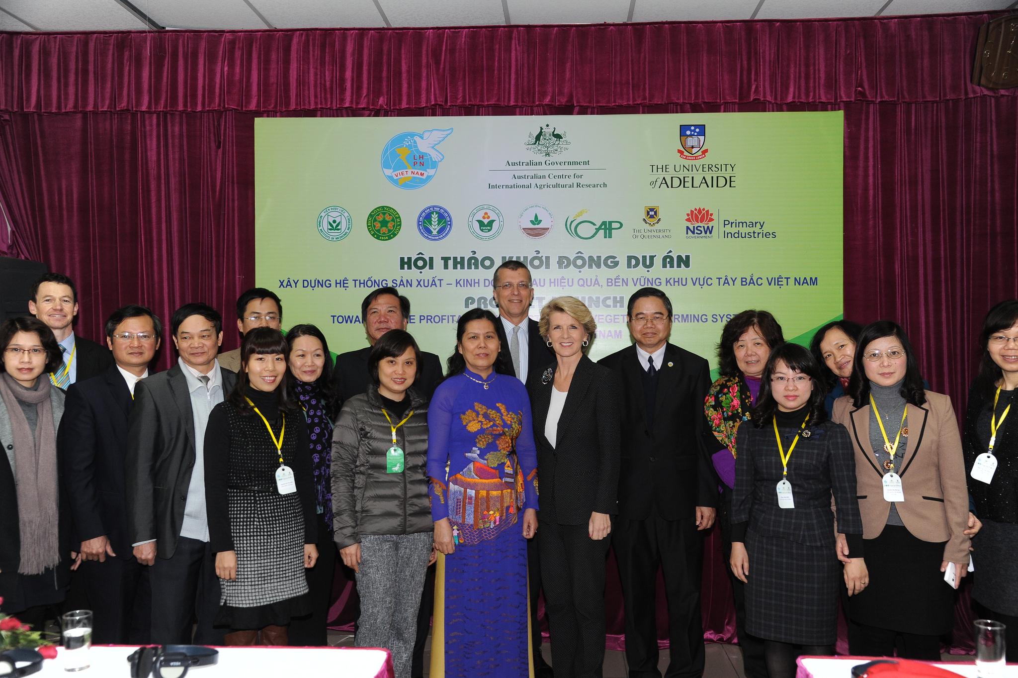 Australian Foreign Minister Julie Bishop and President of Vietnam Women’s Union Nguyen Thanh Hoa at an inception workshop for an Australian funded project to improve the profitability and sustainability of smallholder vegetable farmers in the highlands of north western Vietnam, Hanoi on 19 February 2014.