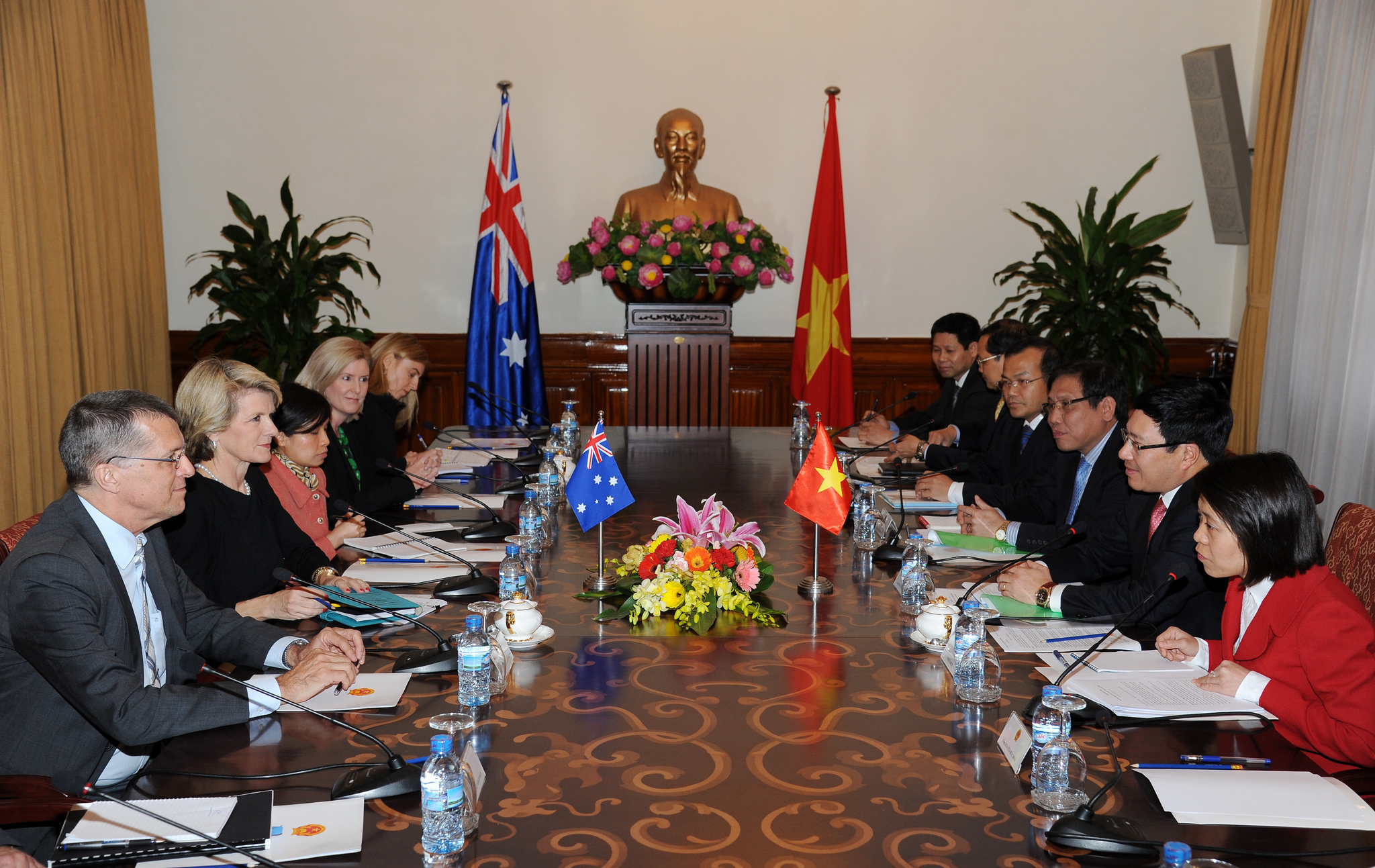 Australian Foreign Minister Julie Bishop and Vietnamese Foreign Minister Pham Binh Minh at a bilateral meeting in Hanoi on 18 February 2014
