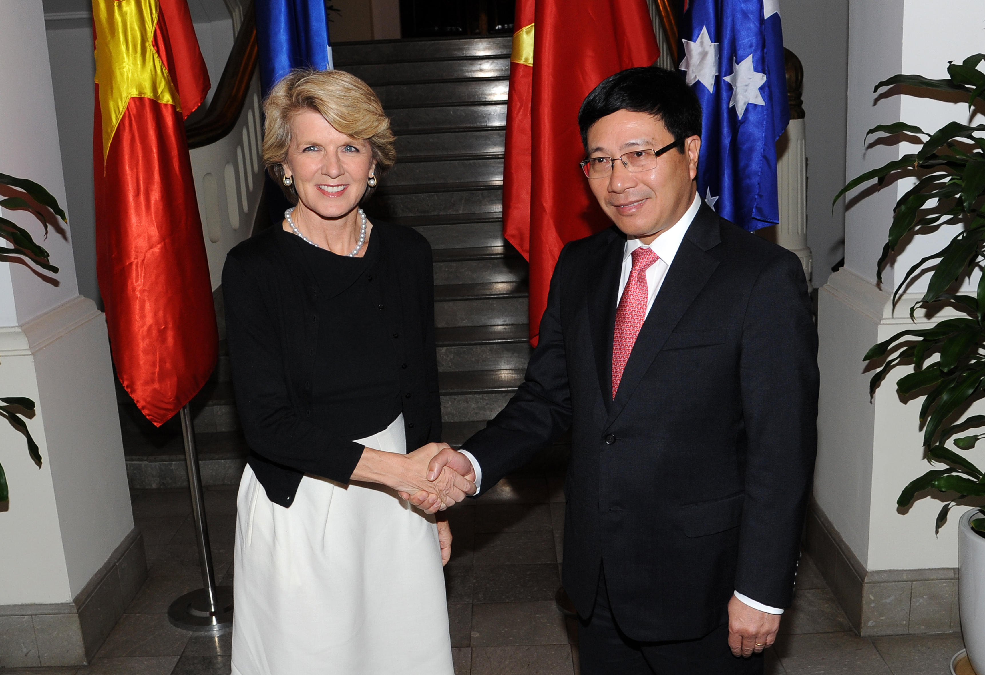 Australian Foreign Minister Julie Bishop and Vietnamese Deputy Prime Minister, Foreign Minister Pham Binh Minh in Hanoi on 18 February 2014