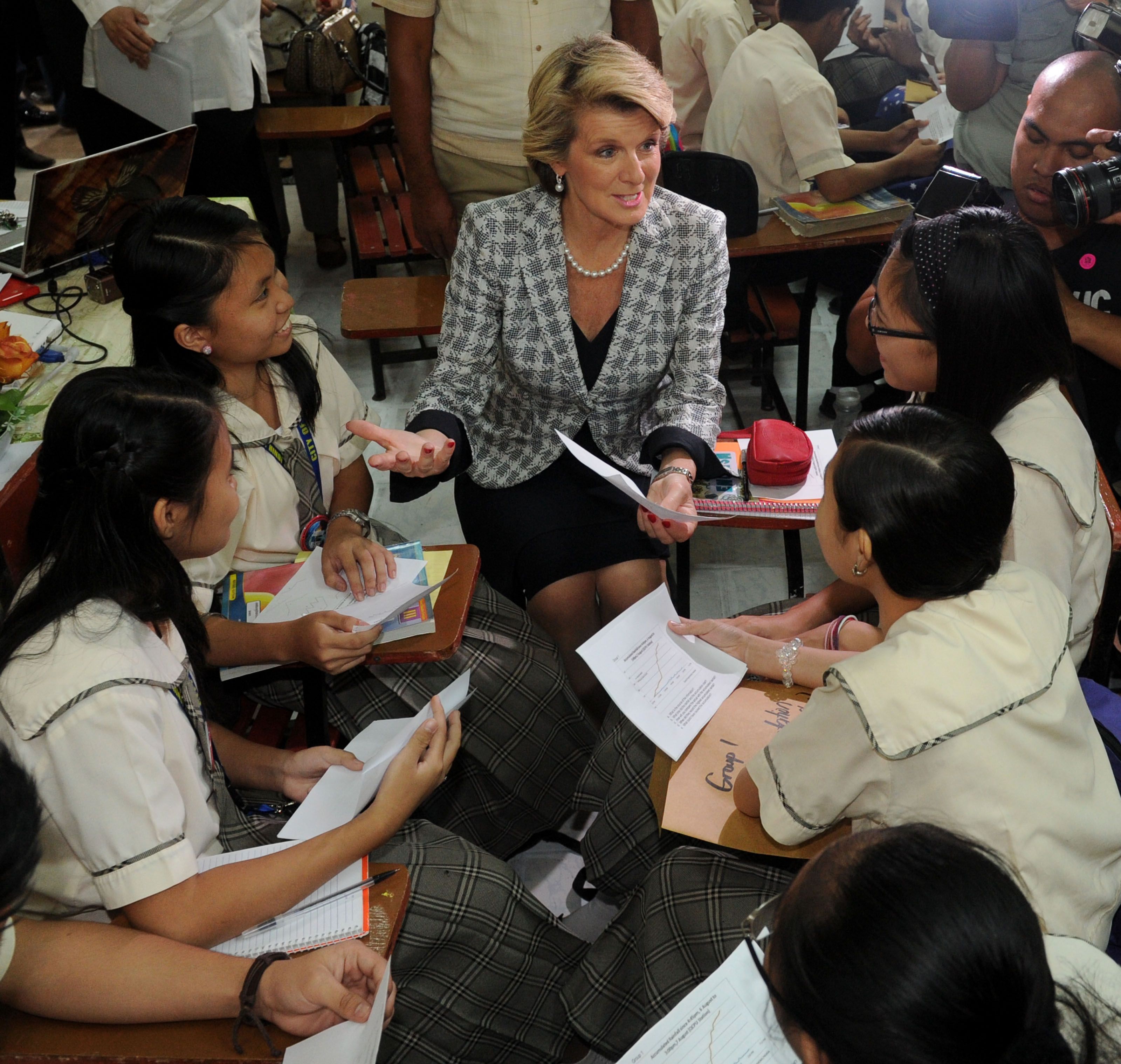 Hon Julie Bishop MP, Minister for Foreign Affairs, spends some time with the students of Neptali Gonzales High School in Mandaluyong City, during the launch of the Basic Education Sector Transformation (BEST) Program on 21 February 2014. Ms Bishop announced a new funding assistance for education totalling A$150 million or PHP6 billion over the next three years for the program in the Philippines.