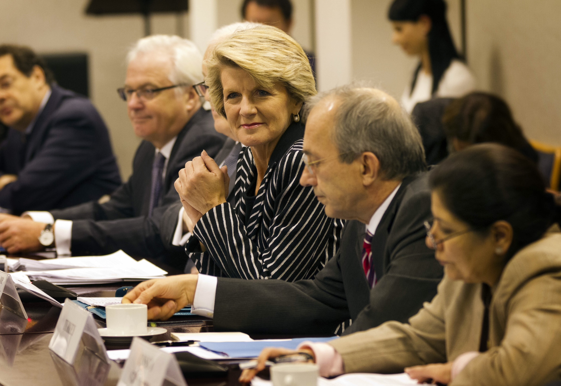 Foreign Minister, Julie Bishop, briefing members of the Global Governance Group on Australia's G20 priorities at the Permanent Mission of Singapore to the UN.
