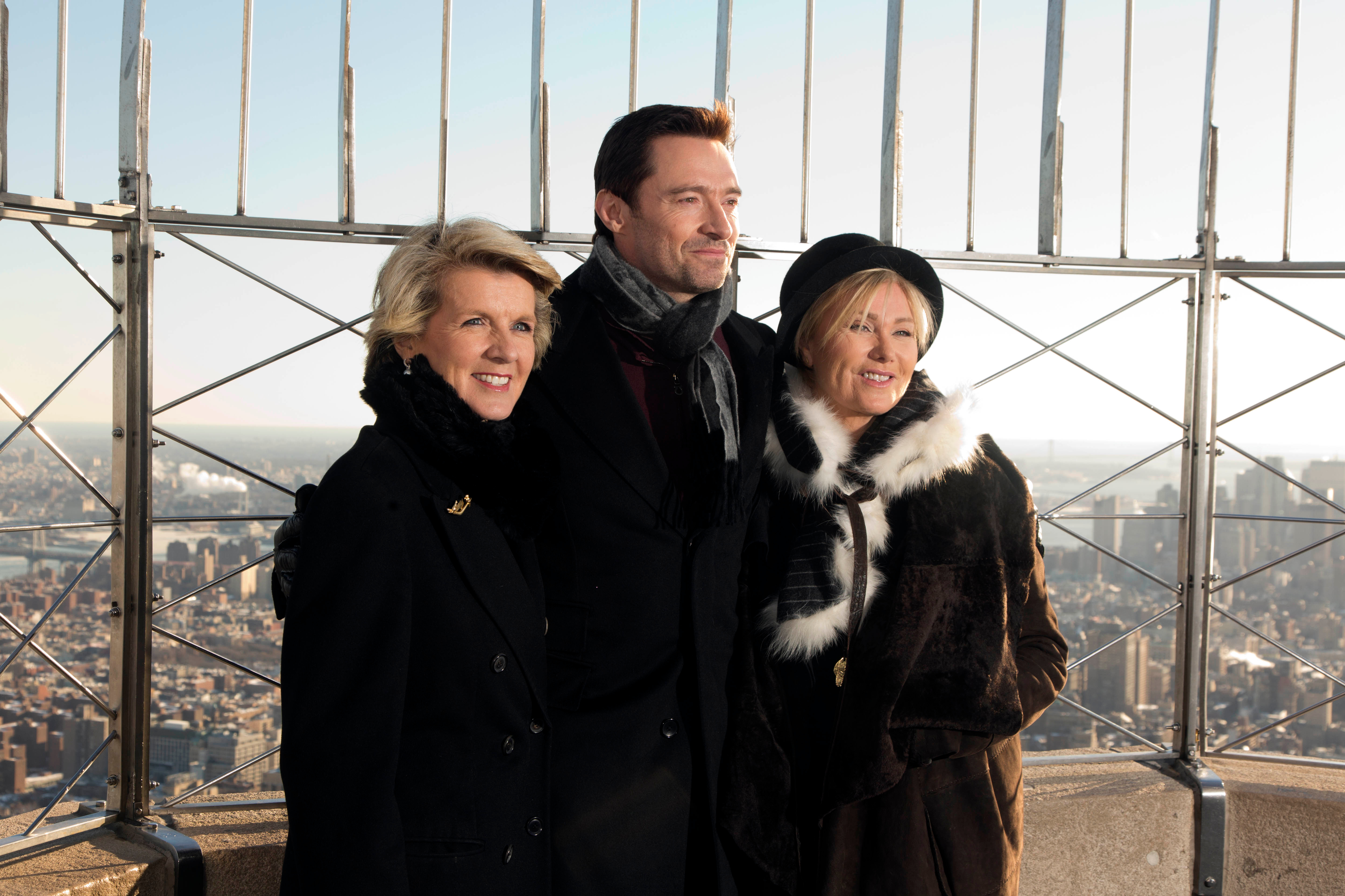 Foreign Minister Julie Bishop with Hugh Jackman and Deborra-lee Furness at the top of the Empire State Building. 24 January 2014.