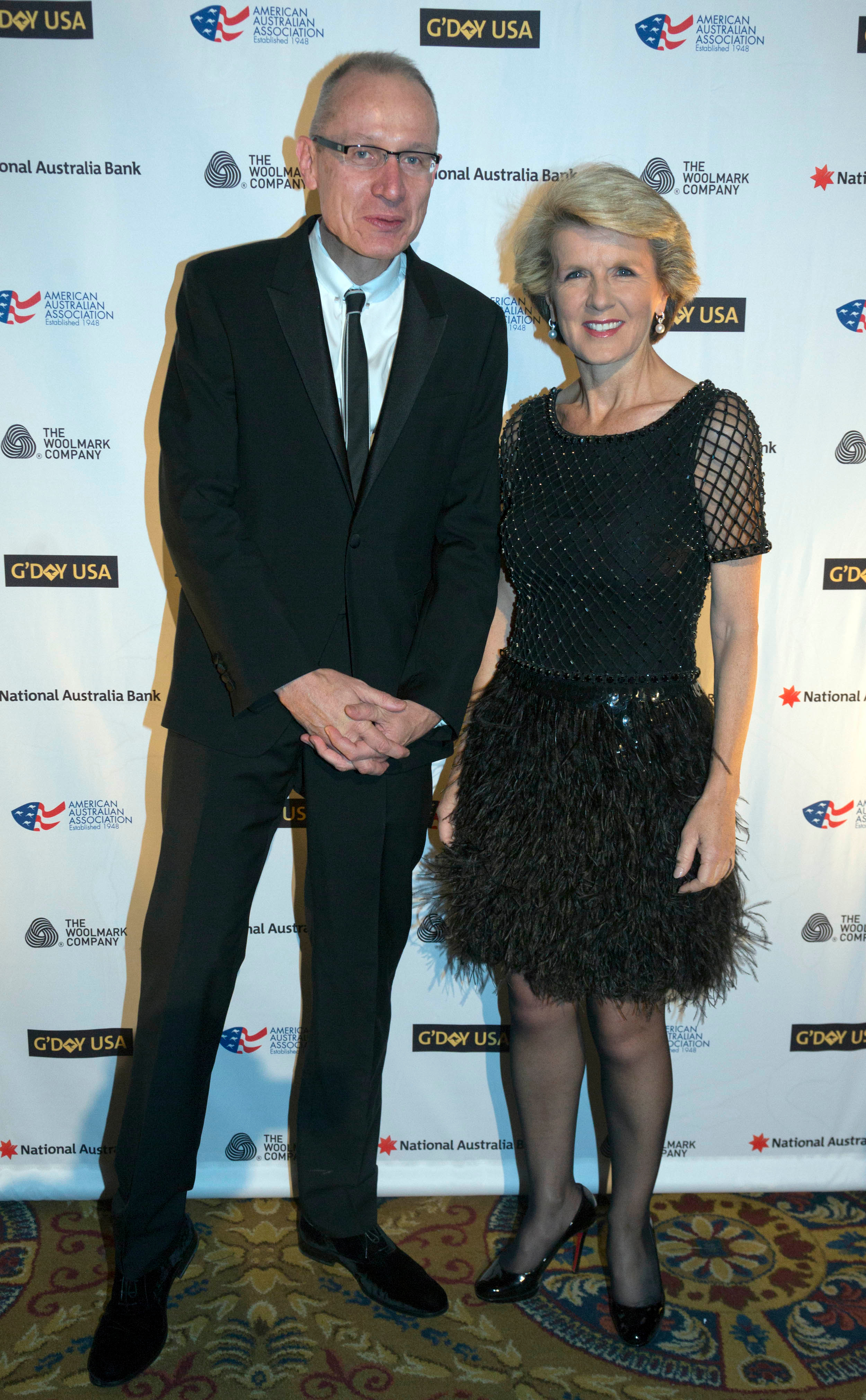 Foreign Minister Julie Bishop with Robert Thomson, CEO of News Corporation, who was honoured for lifetime achievement in business at the G'Day USA Dinner in New York. 24 January 2014.