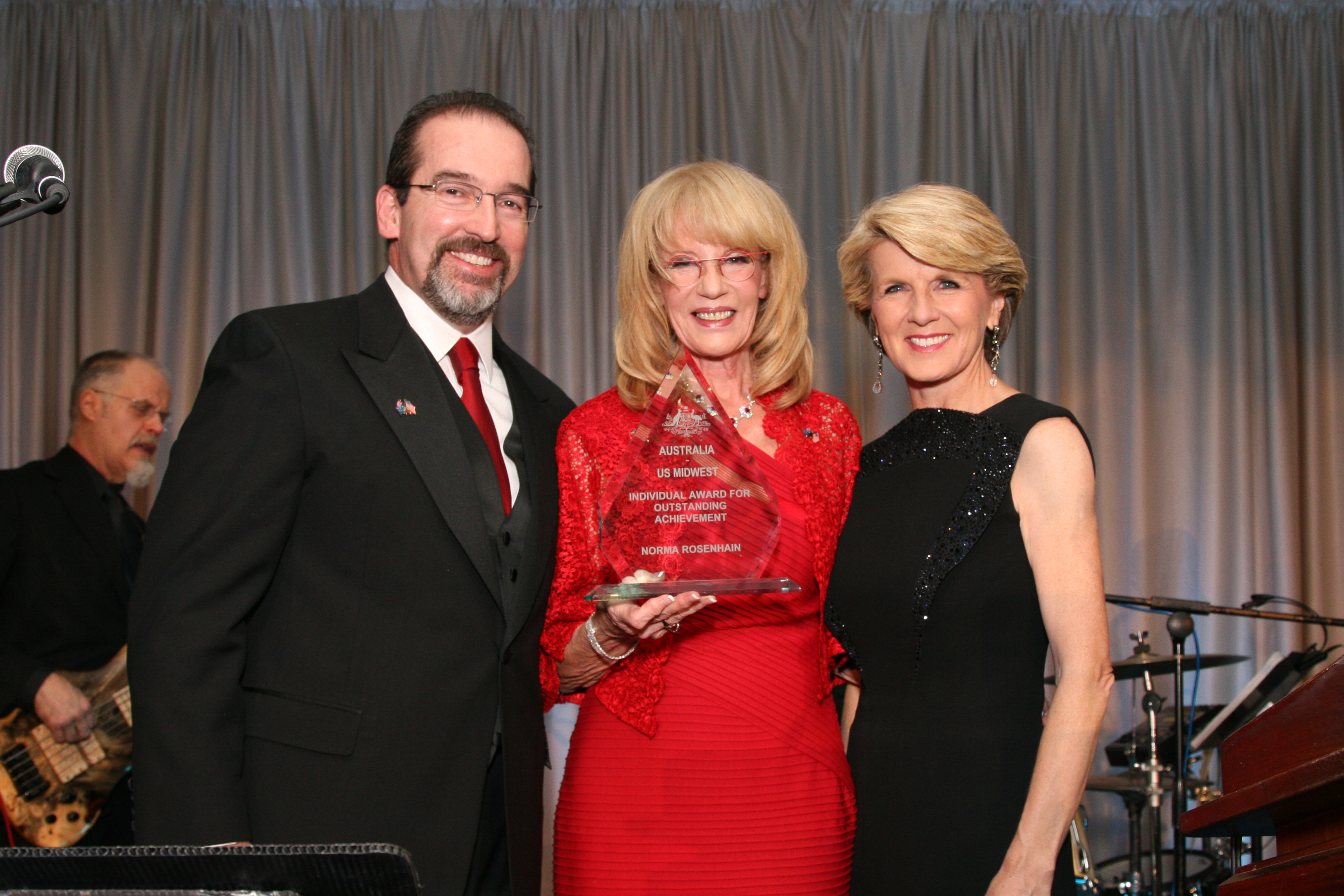 Minister Bishop with Jose Amario, Executive Vice President, Worldwide Supply Chain and Development Franchising, McDonalds, and the Founder and CEO of Creata, Norma Rosenhain, who received the Australia-US Midwest Individual Award for Outstanding Achievement in Chicago on 25 January 2014.