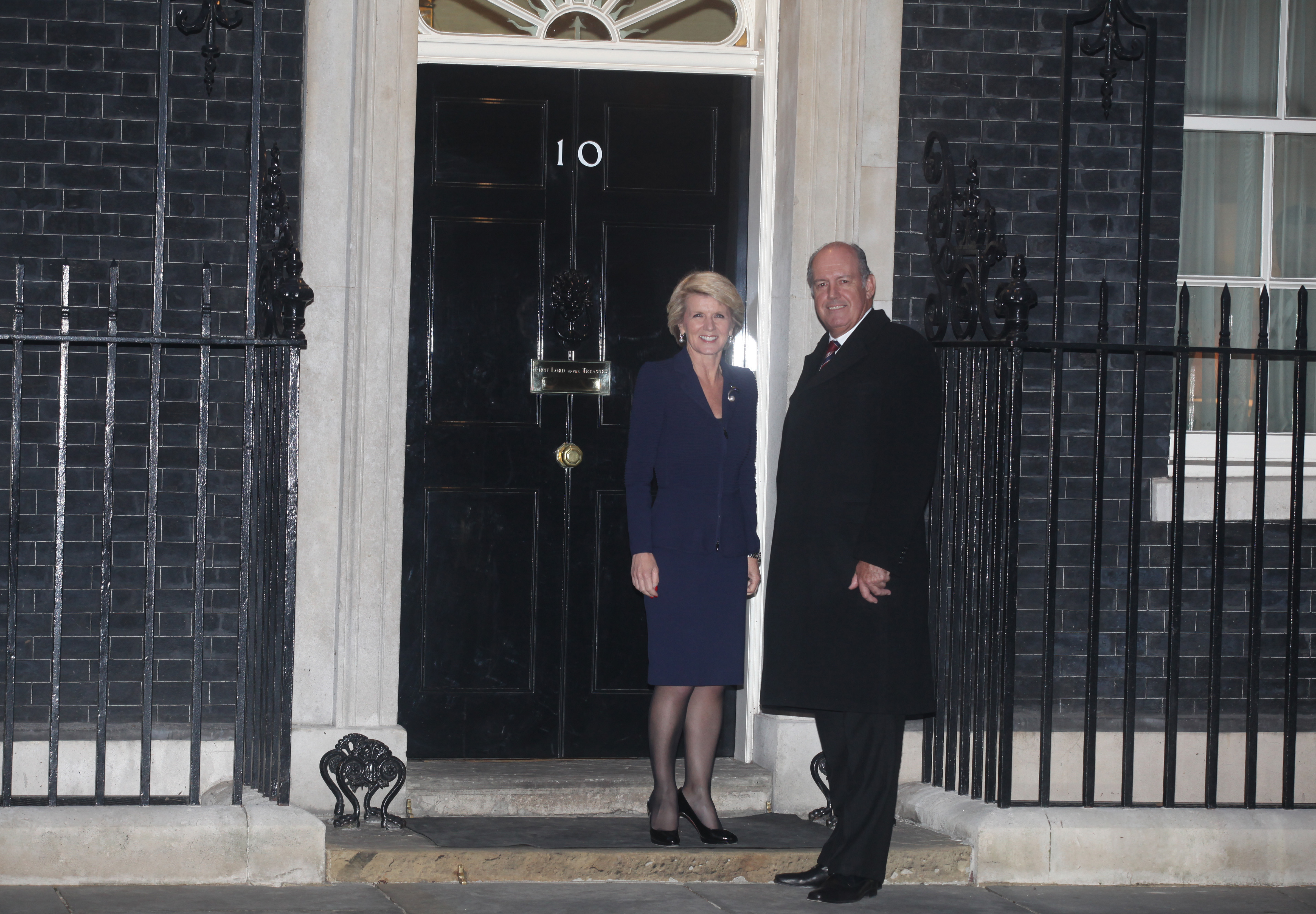 Foreign Minister Julie Bishop and Defence Minister David Johnston arriving at No 10 Downing Street, London to attend a reception on 11 March 2014, during AUKMIN.