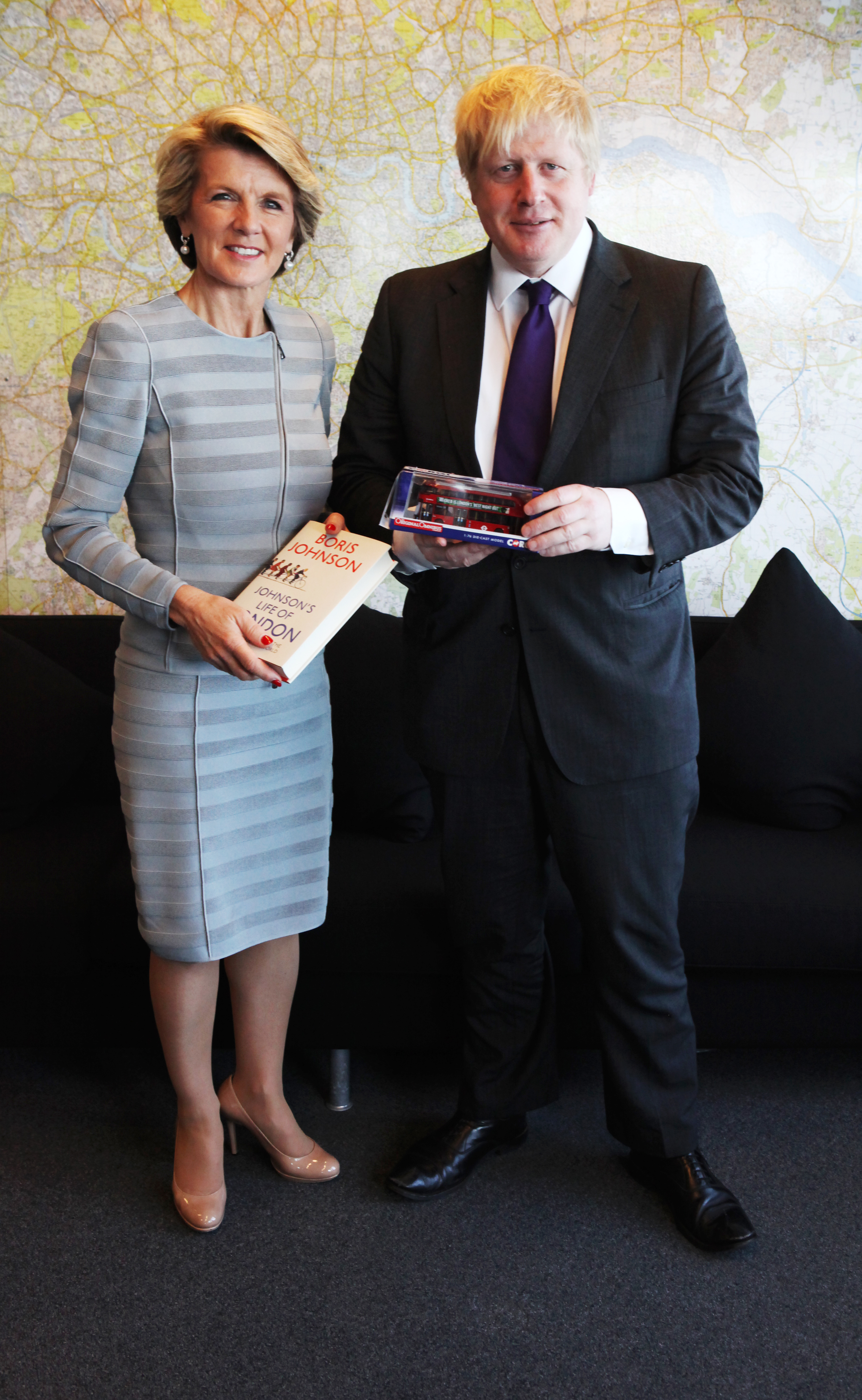 Minister Julie Bishop with the Mayor of London, Boris Johnson, during a meeting at City Hall, London on 11 March 2014 during AUKMIN