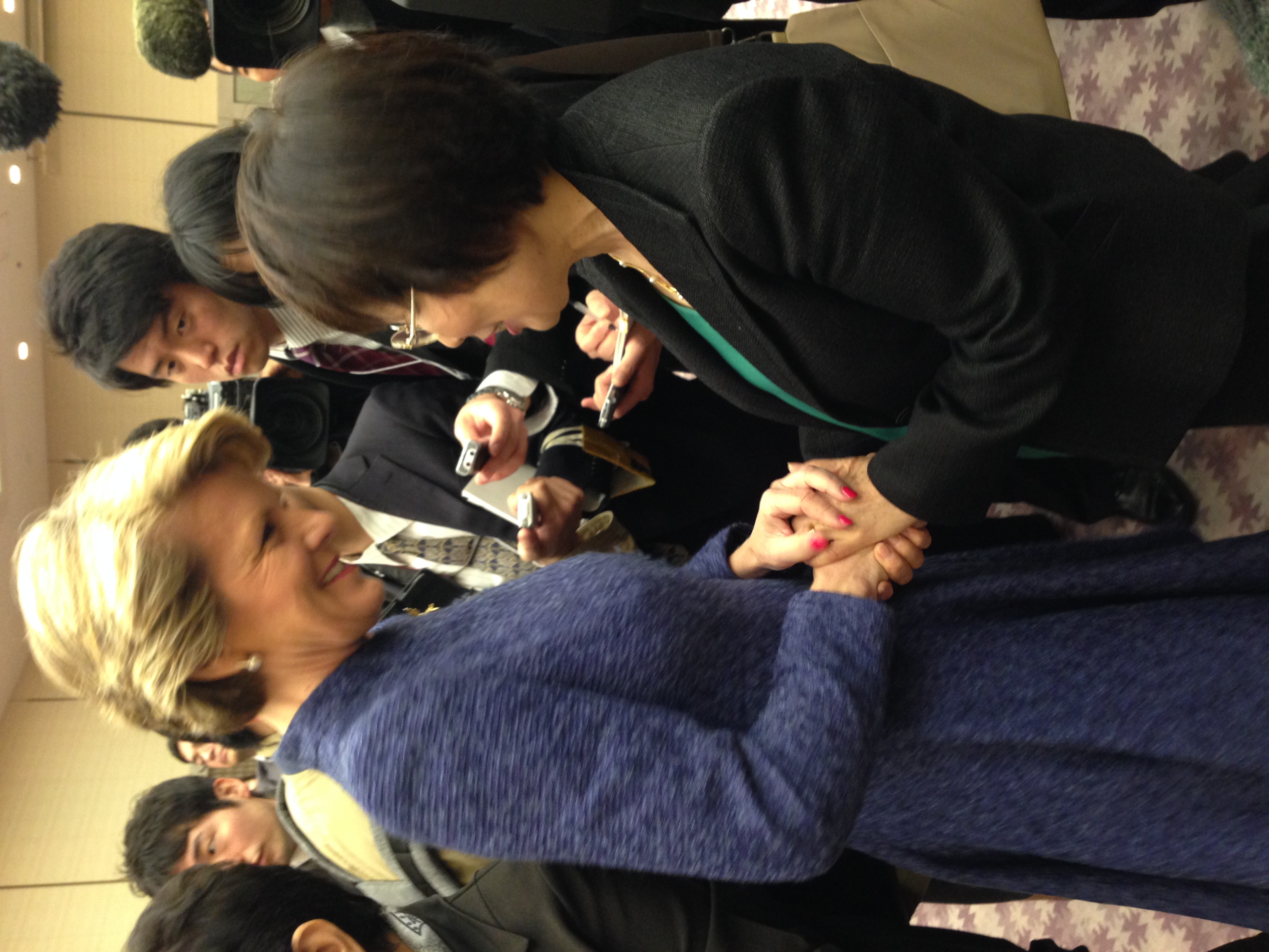 Foreign Minister Julie Bishop speaks with A-bomb survivor Keiki Ogura in Hiroshima.