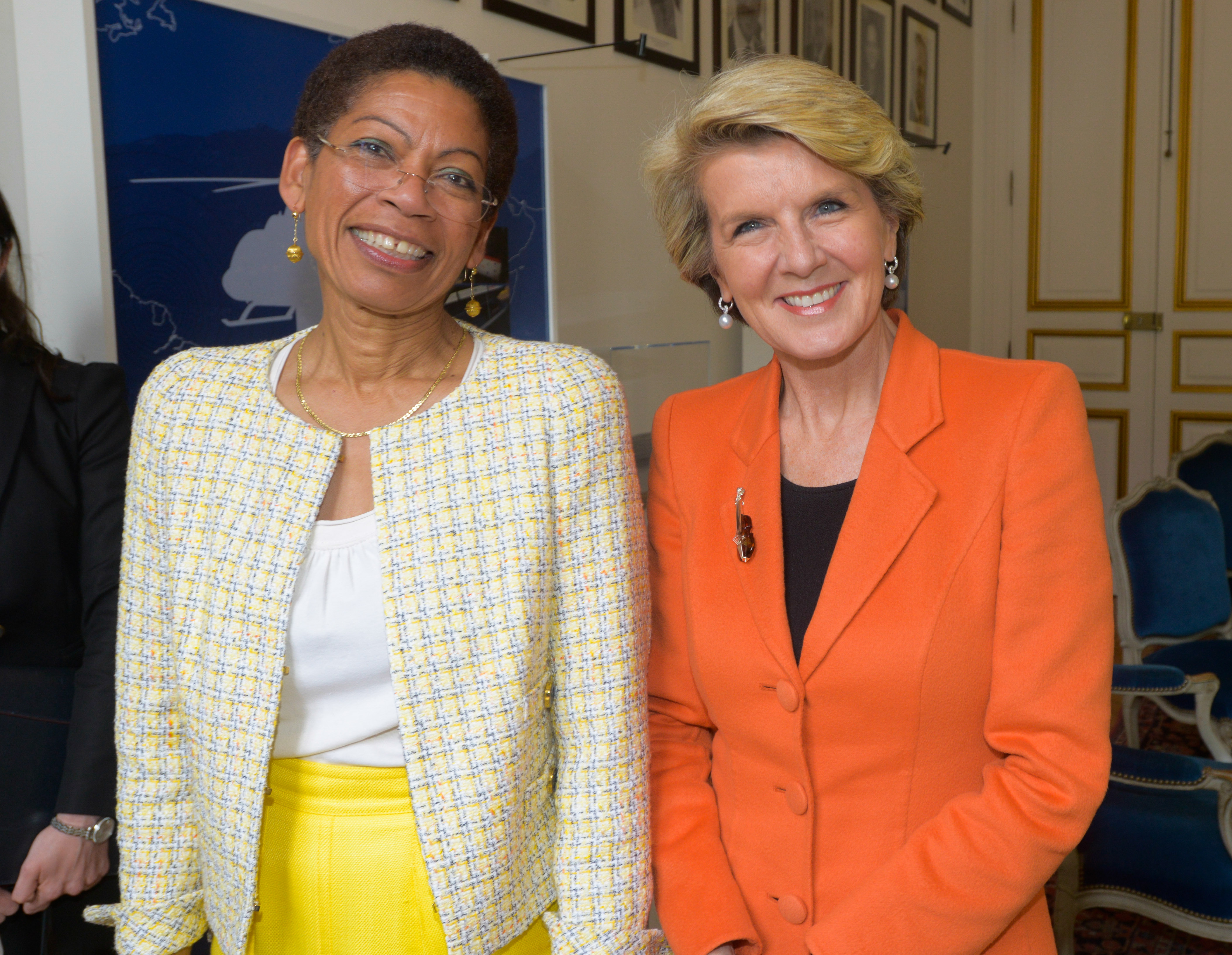 The Hon Julie Bishop MP, Foreign Minister of Australia, meets French Minister for Overseas Territories, Ms George Pau-Landevin, in Paris on 23 April 2014.