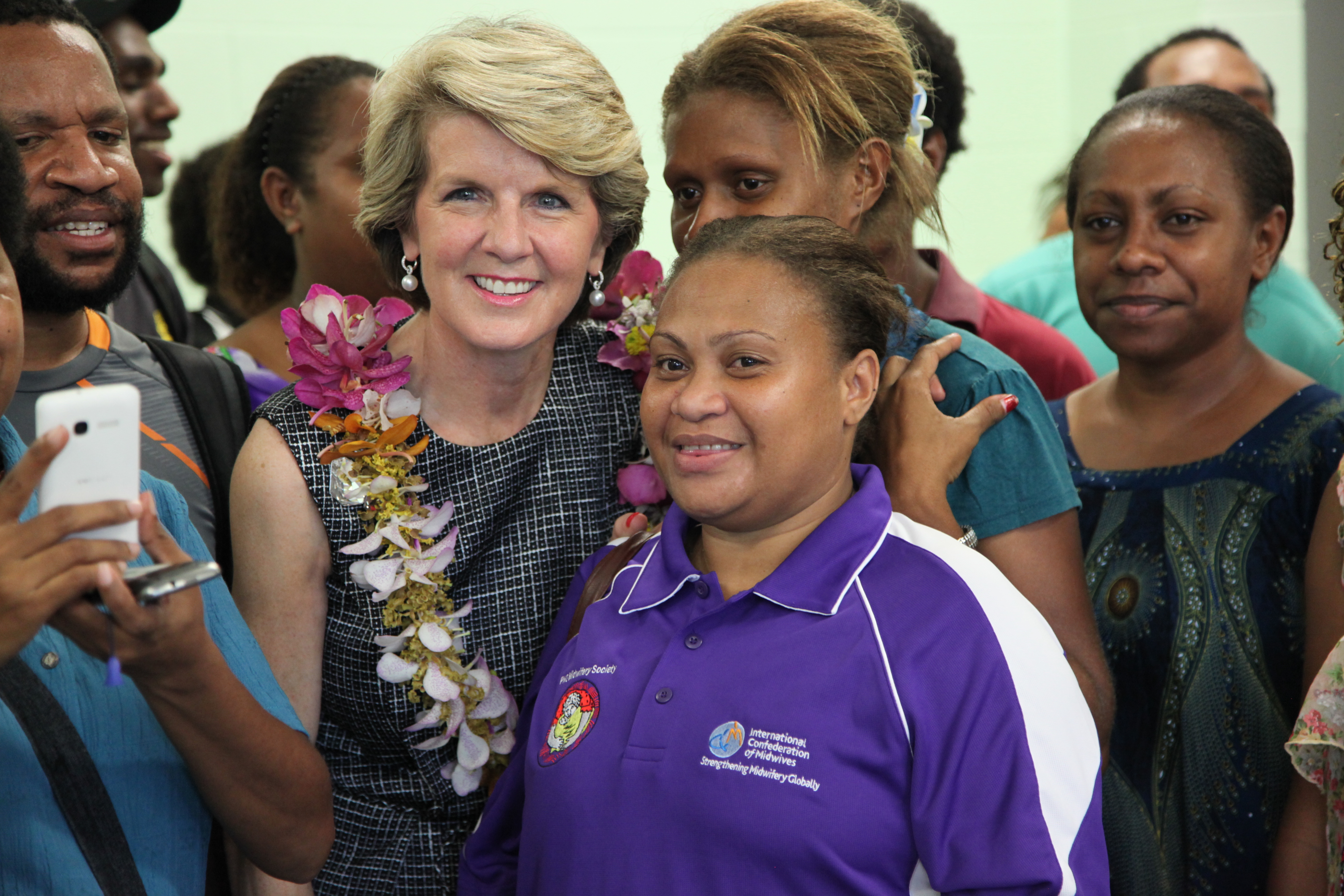 Foreign Minister Julie Bishop with students at the Australian-built midwifery school at Pacific Adventist University.