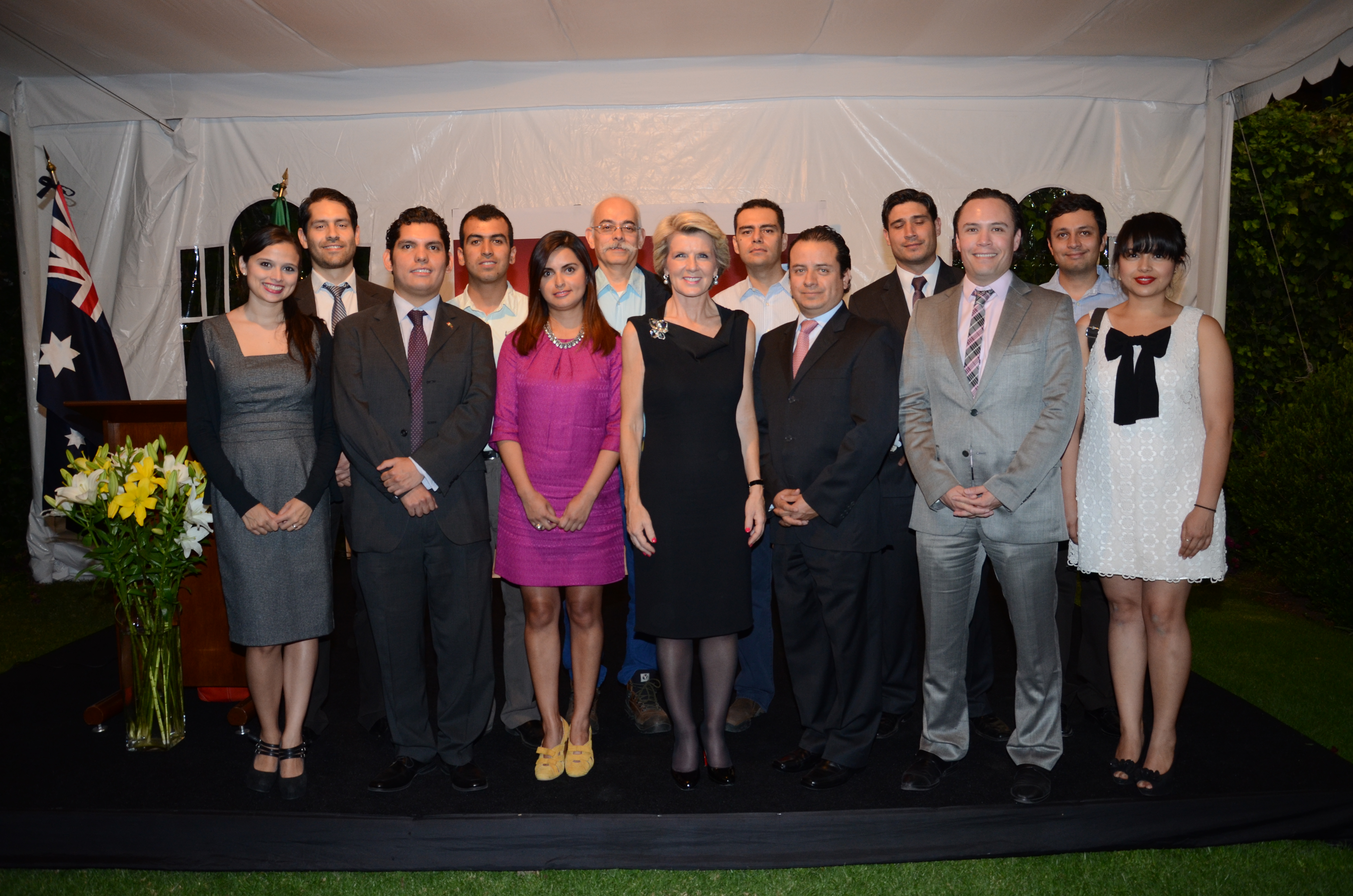 The Minister for Foreign Affairs of Australia, The Hon Julie Bishop MP, with Mexican recipients of Australian scholarships during a function at the Australian official residence in Mexico City. 14 April 2014.