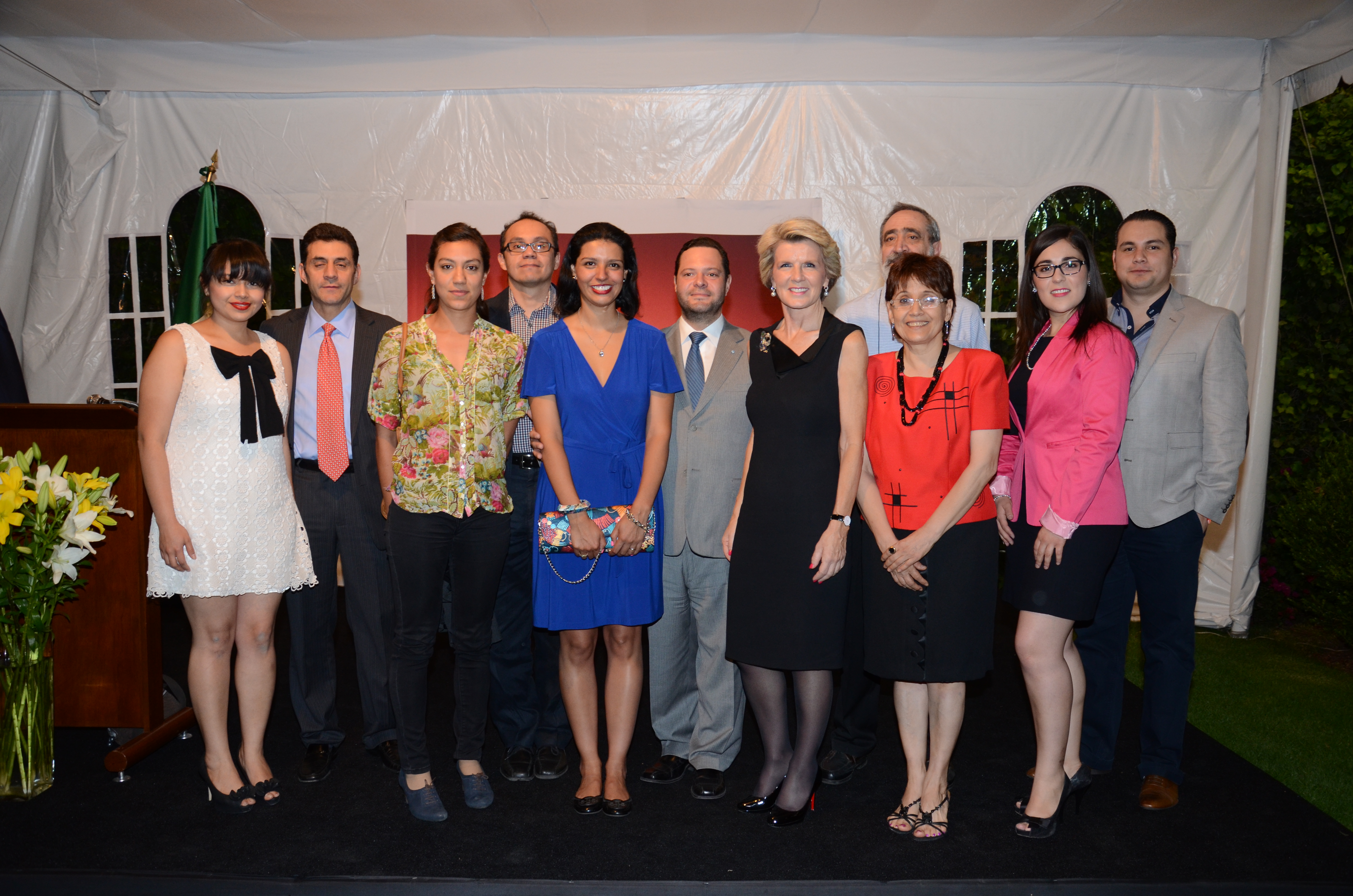 The Minister for Foreign Affairs, The Hon Julie Bishop MP, with representatives of recipient organisations of the Australian Government's Direct Aid Program, during a reception at the official residence in Mexico City. 14Aapril 2014.