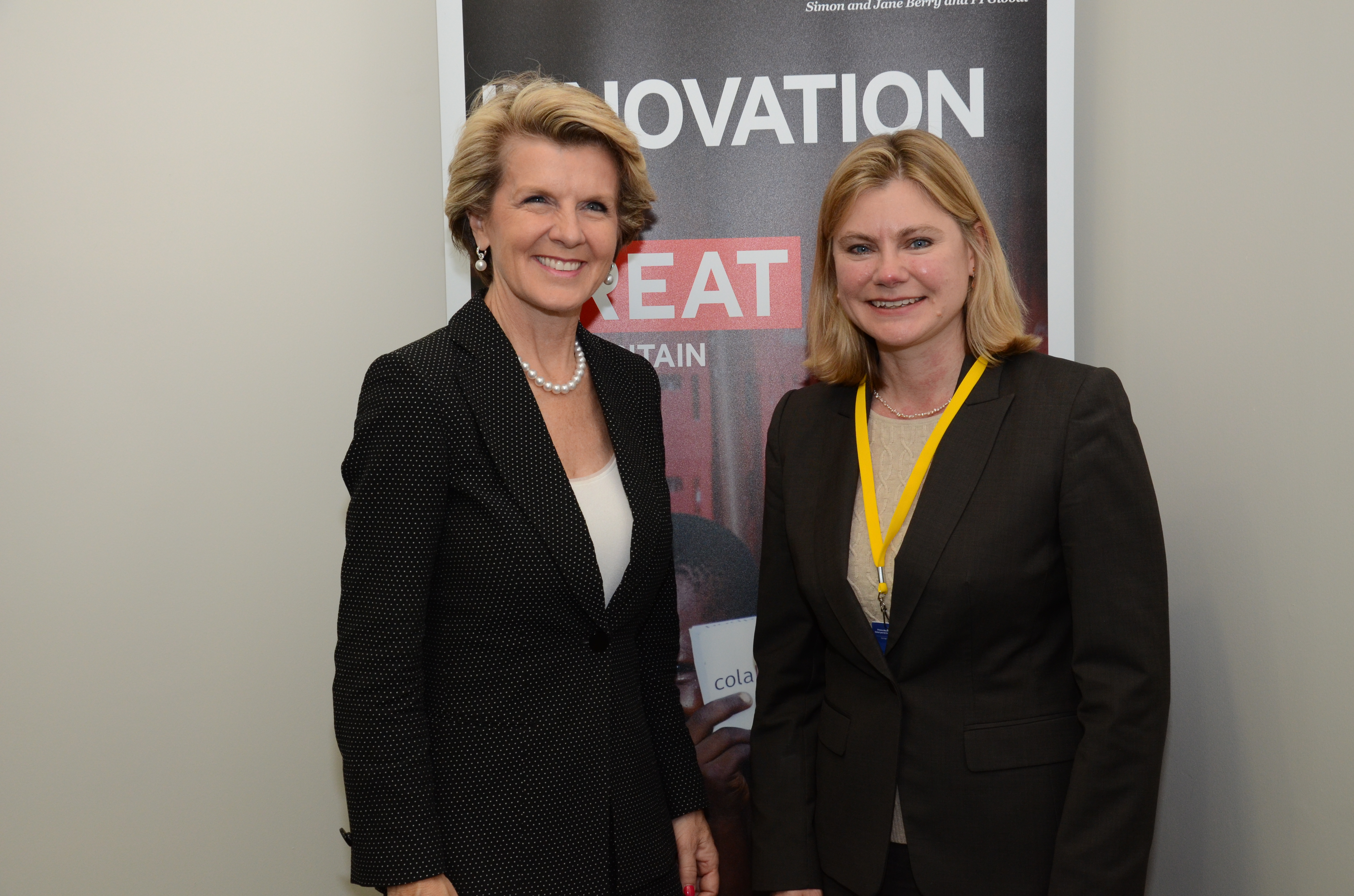 The Minister for Foreign Affairs of Australia, The Hon Julie Bishop MP and the Secretary of state for International Development of the United Kingdom, The Rt Hon Justine Greening MP, during a bilateral meeting in the margins of the First High-Level Meeting of the Global Partnership for Development Cooperation in Mexico City. 15 April 2014.