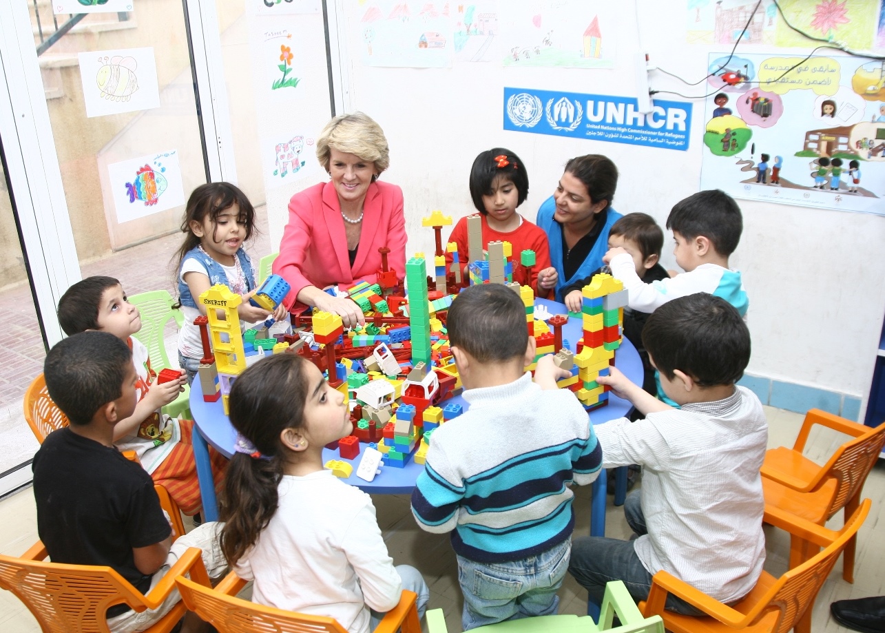 Foreign Minister Bishop Speaking with Syrian Refugee Children - UNHCR Registration Centre