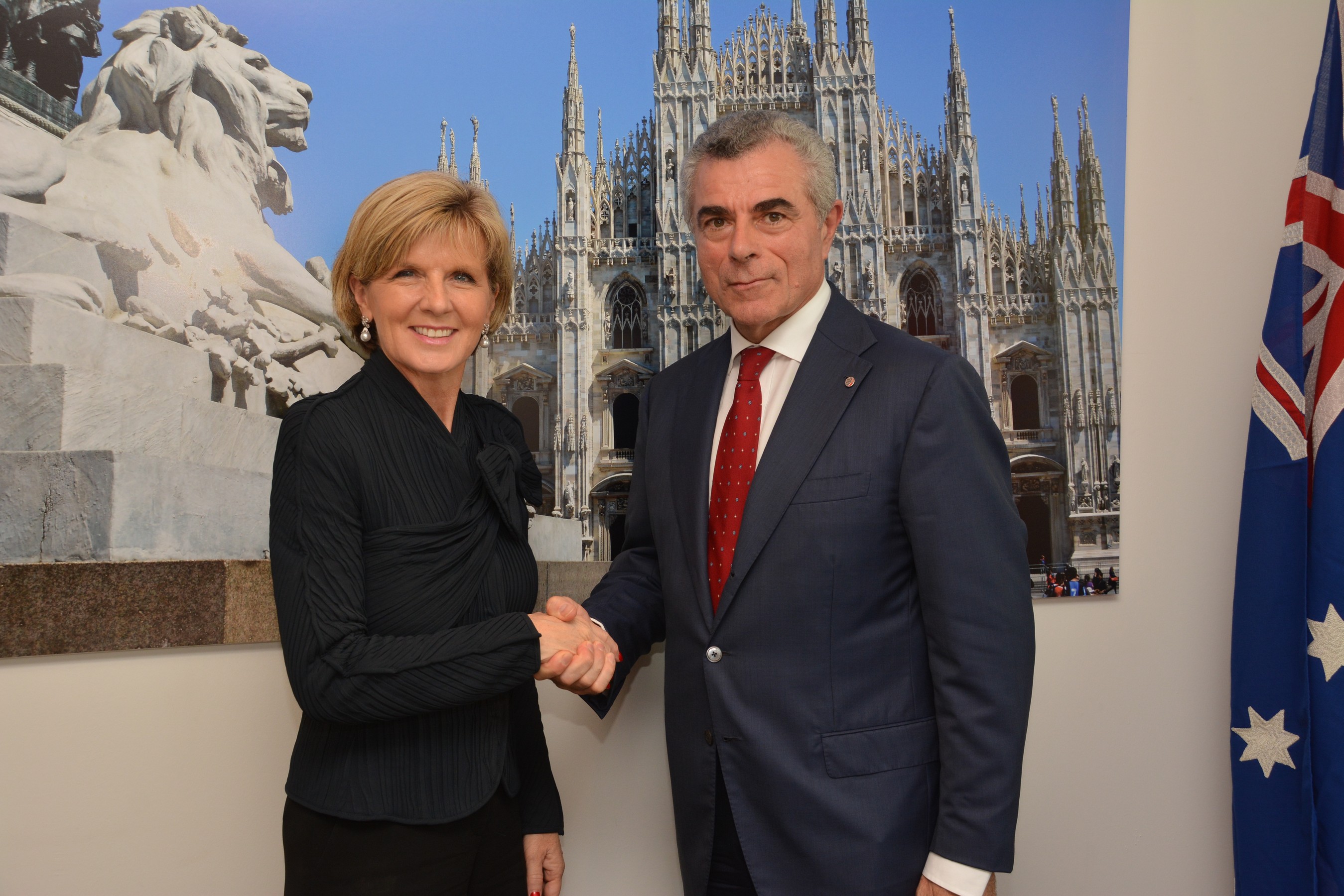 Foreign Minister Julie Bishop meets Mauro Moretti, CEO of the Italian company Finmeccanica, during her visit to Milan to attend the Asia Europe Meeting (ASEM).