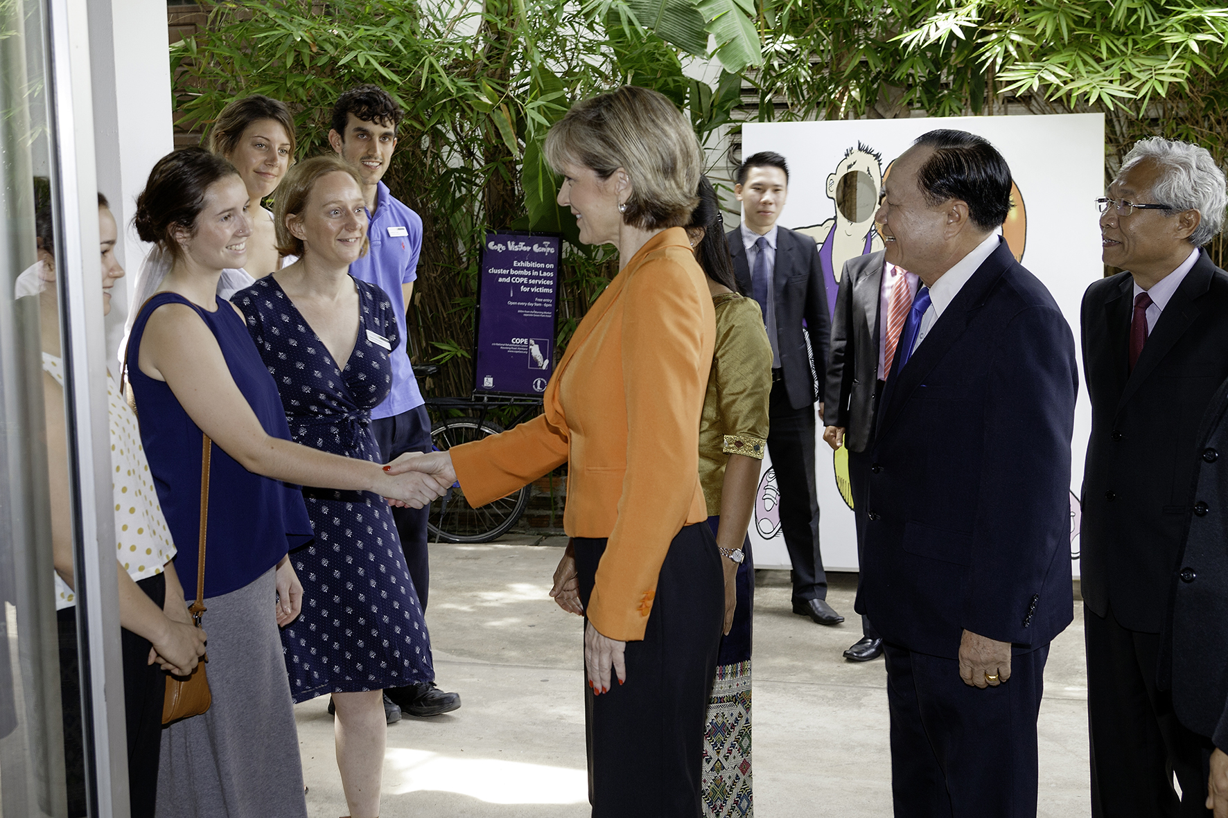 Foreign Minister Julie Bishop visits the UXO Visitor Centre of the Cooperative Orthotic and Prosthetic Enterprise (COPE). Photo: Bart Verweij