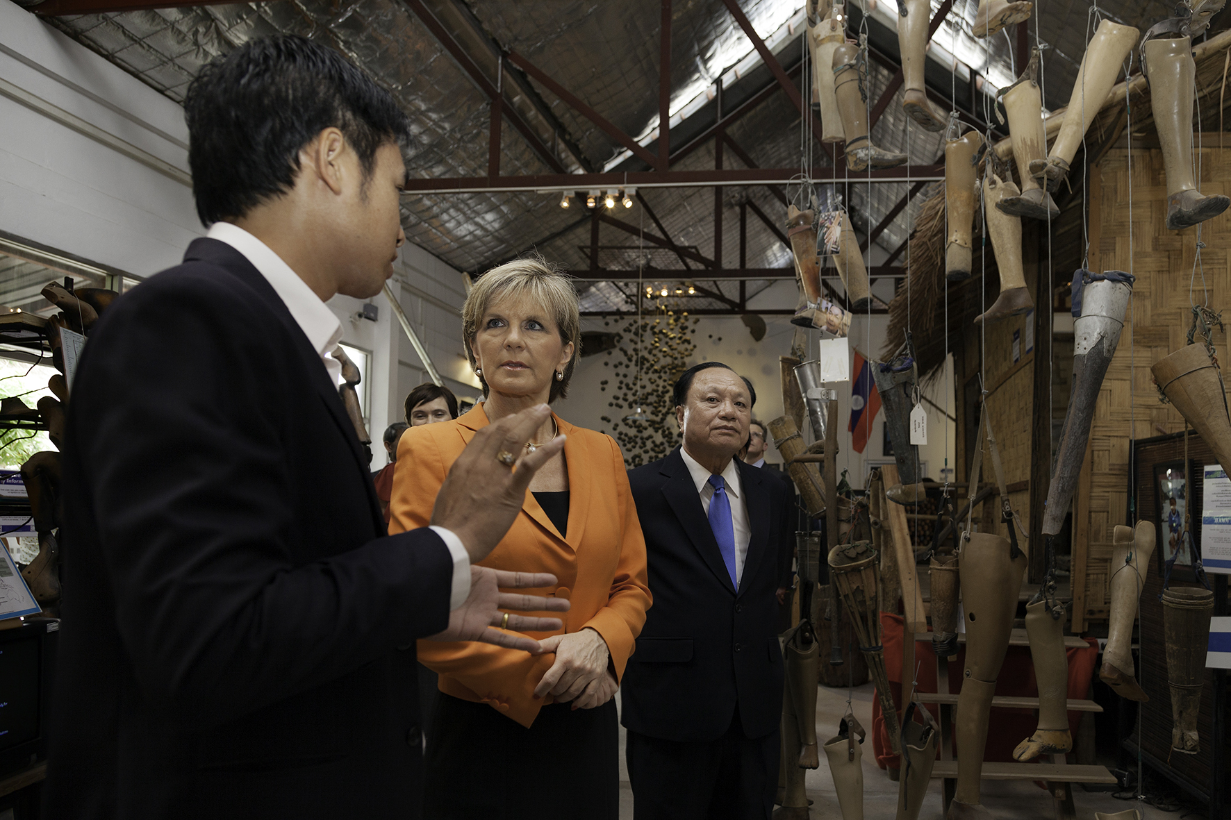 Foreign Minister Julie Bishop visits the UXO Visitor Centre of the Cooperative Orthotic and Prosthetic Enterprise (COPE).