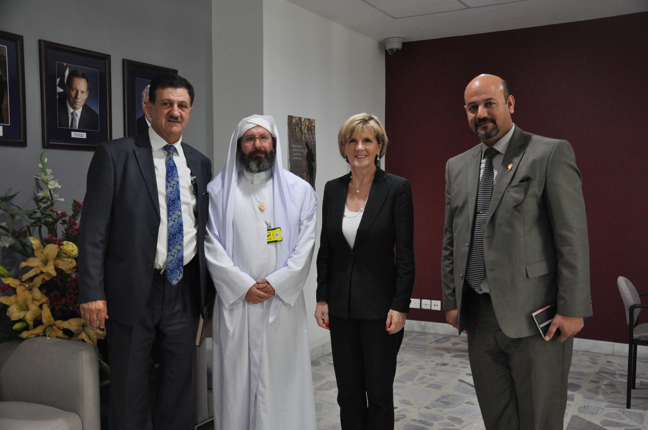 Foreign Minister Bishop meets representatives of the Sabaean-Mandean Community, Harth al-Harthy, Alaa Aziz Tarish Dweir, Essam Abdul Razzaq Ajeel Australian Embassy Baghdad 19 October 2014.