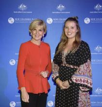 Foreign Minister Julie Bishop with Siobhan Strickland, 2018 Indonesia Fellow, Deakin University
