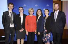 Foreign Minister Julie Bishop with (L-R) scholar Bianca Hoffrichter, Associate Professor Jane Lawrence, and NCP alumnus Michael Dyer from the University of South Australia.