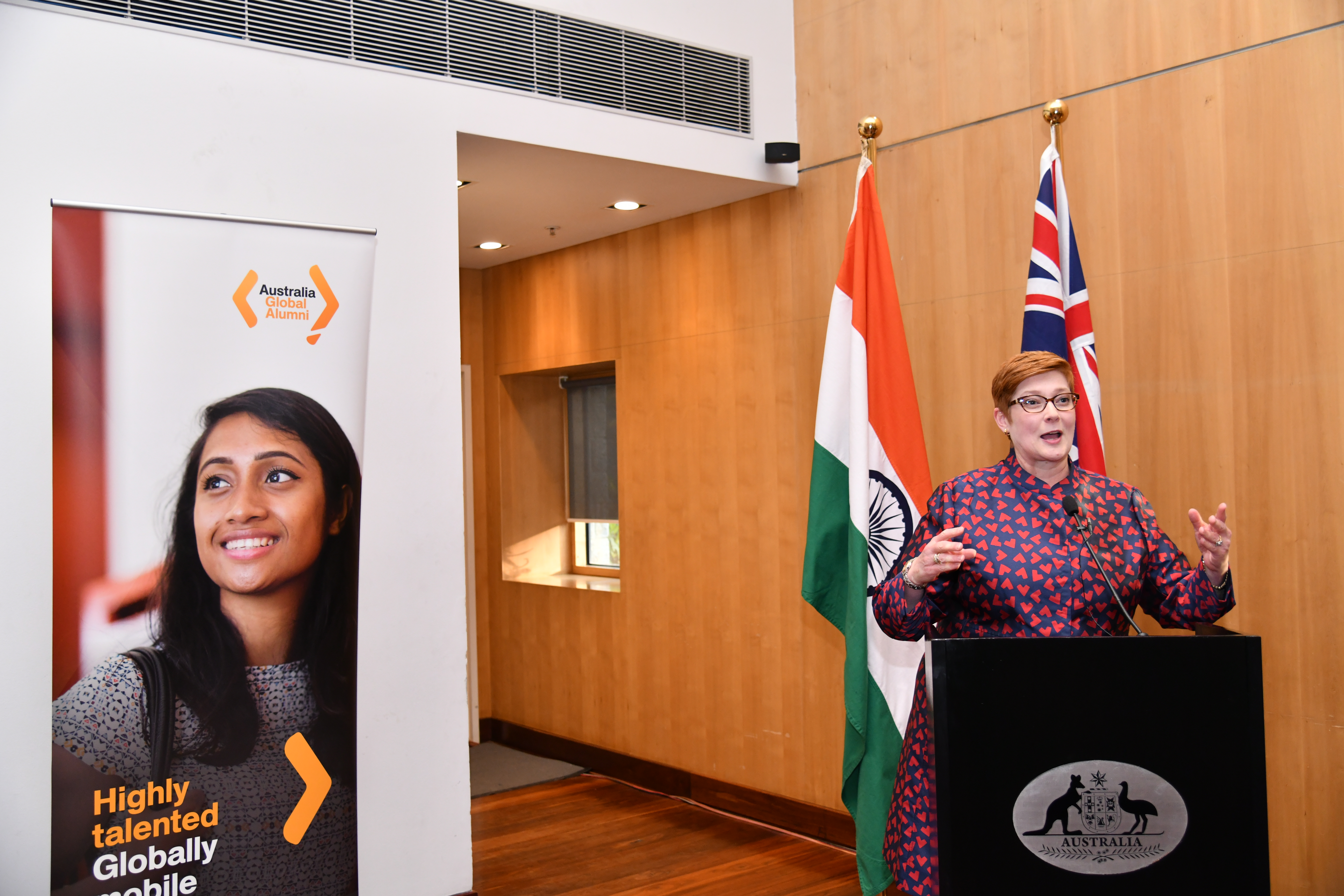 Foreign Minister Marise Payne addressing the Australian alumni and New Colombo Plan students at the Australian High Commission in New Delhi, credit: DFAT