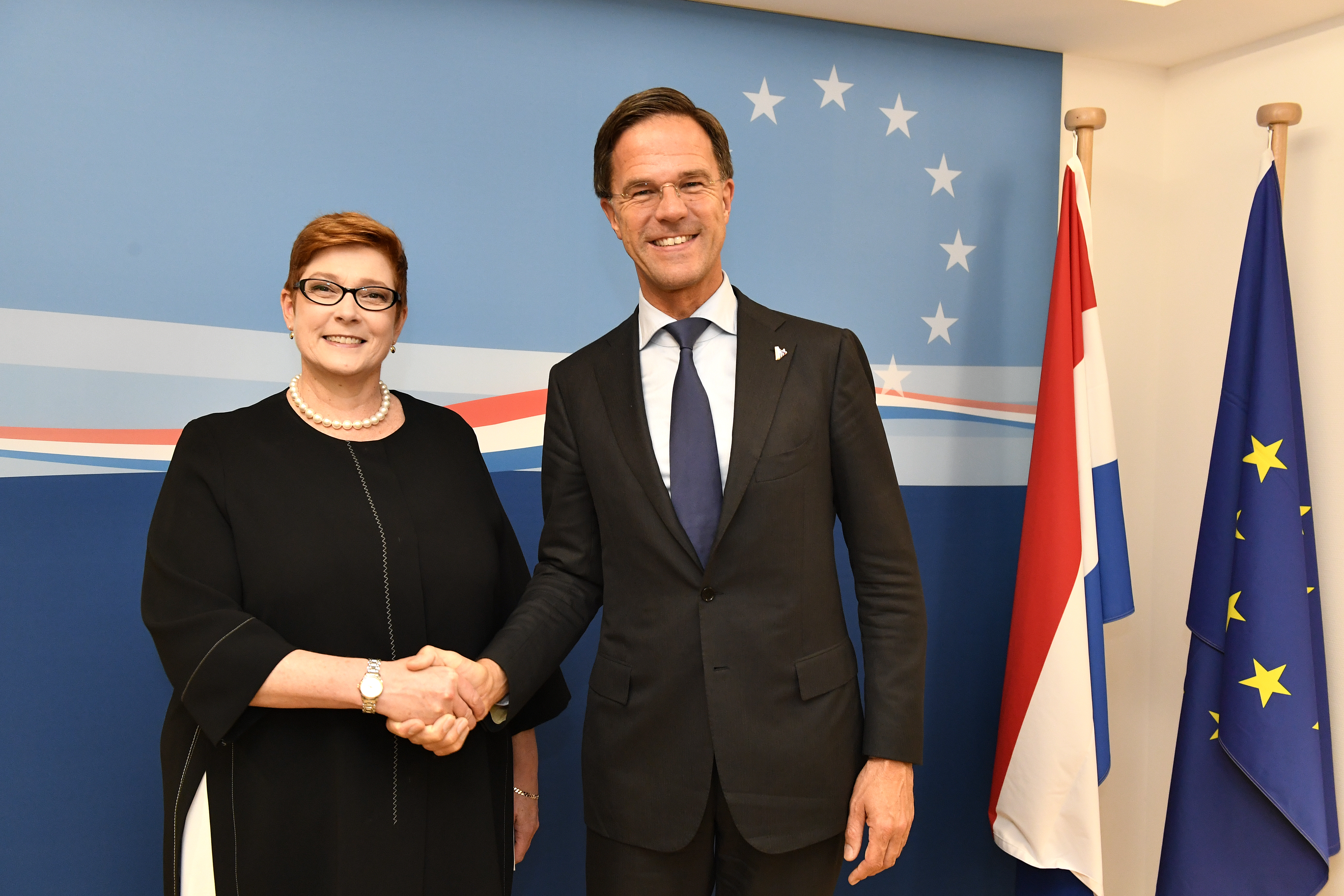 Australian Minister for Foreign Affairs Senator Marise Payne and Dutch Prime Minister Mark Rutte meet in in the margins of the Asia-Europe Meeting in Brussels. Photo credit: DFAT/Frederic Guerdin.