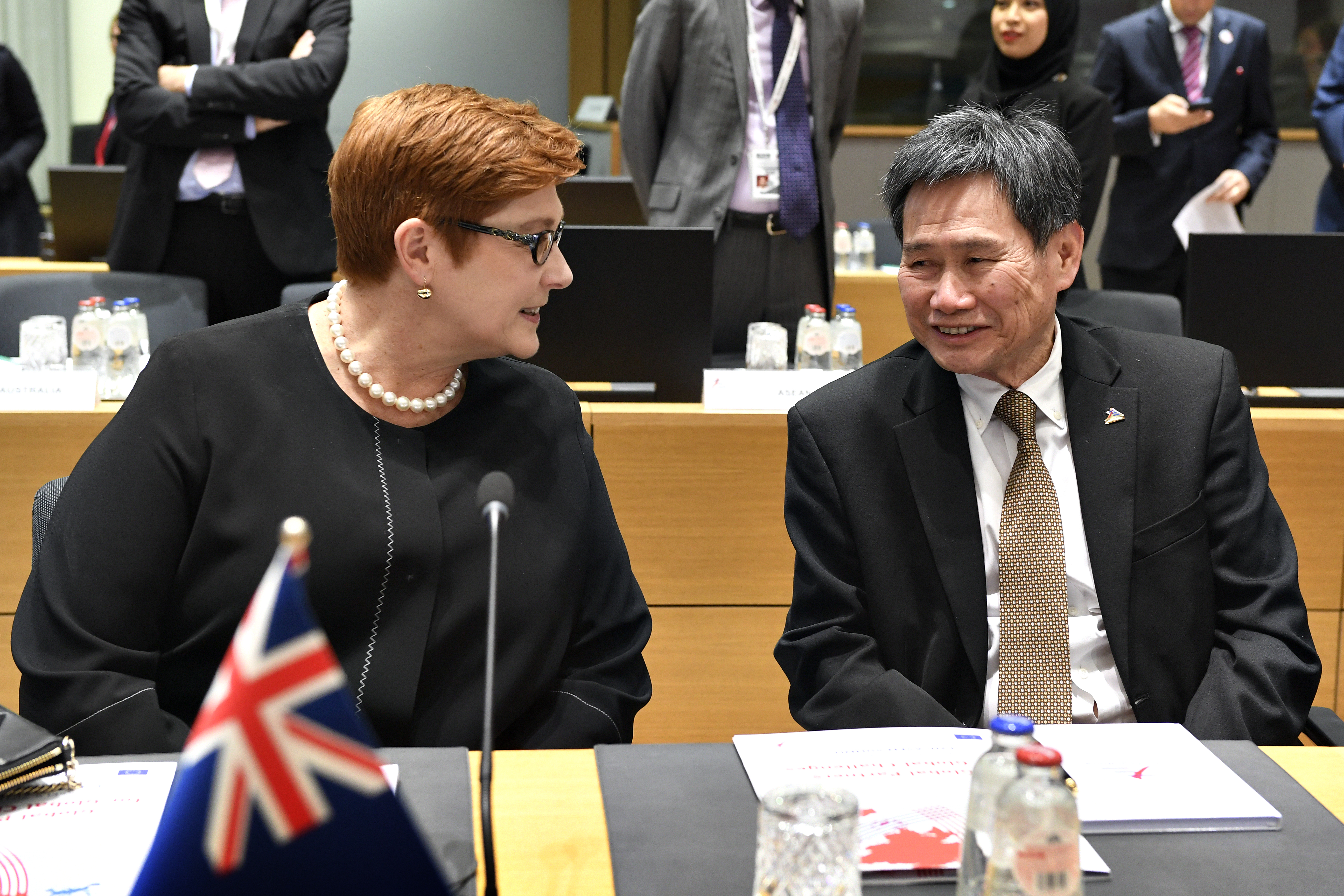Australian Minister for Foreign Affairs Senator Marise Payne speaking with ASEAN Secretary General Lim Jock Hoi at the Opening Ceremony of the Asia-Europe Meeting in Brussels. Photo credit: DFAT/Frederic Guerdin.