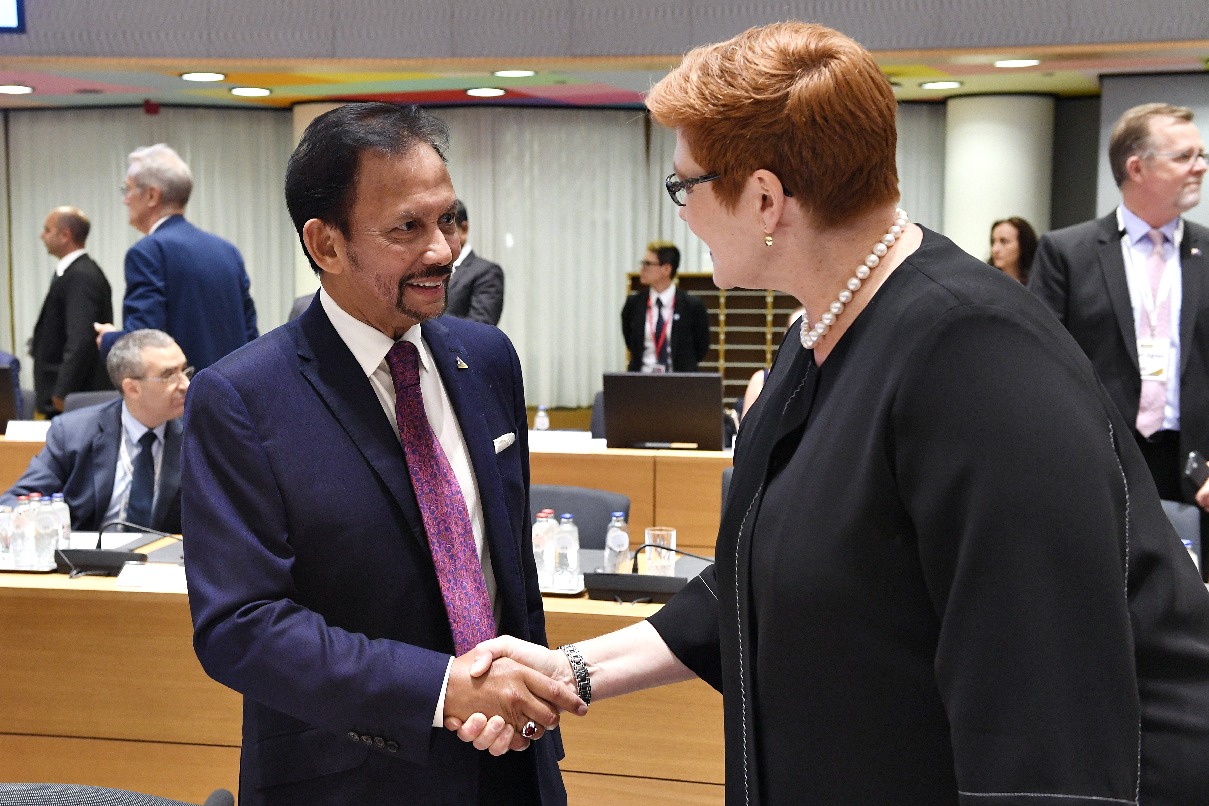 Australian Minister for Foreign Affairs Senator Marise Payne meets His Majesty Sultan Haji Hassanal Bolkiah of Brunei in advance of the Opening Ceremony of the Asia-Europe Meeting in Brussels. Photo credit: DFAT/Frederic Guerdin.