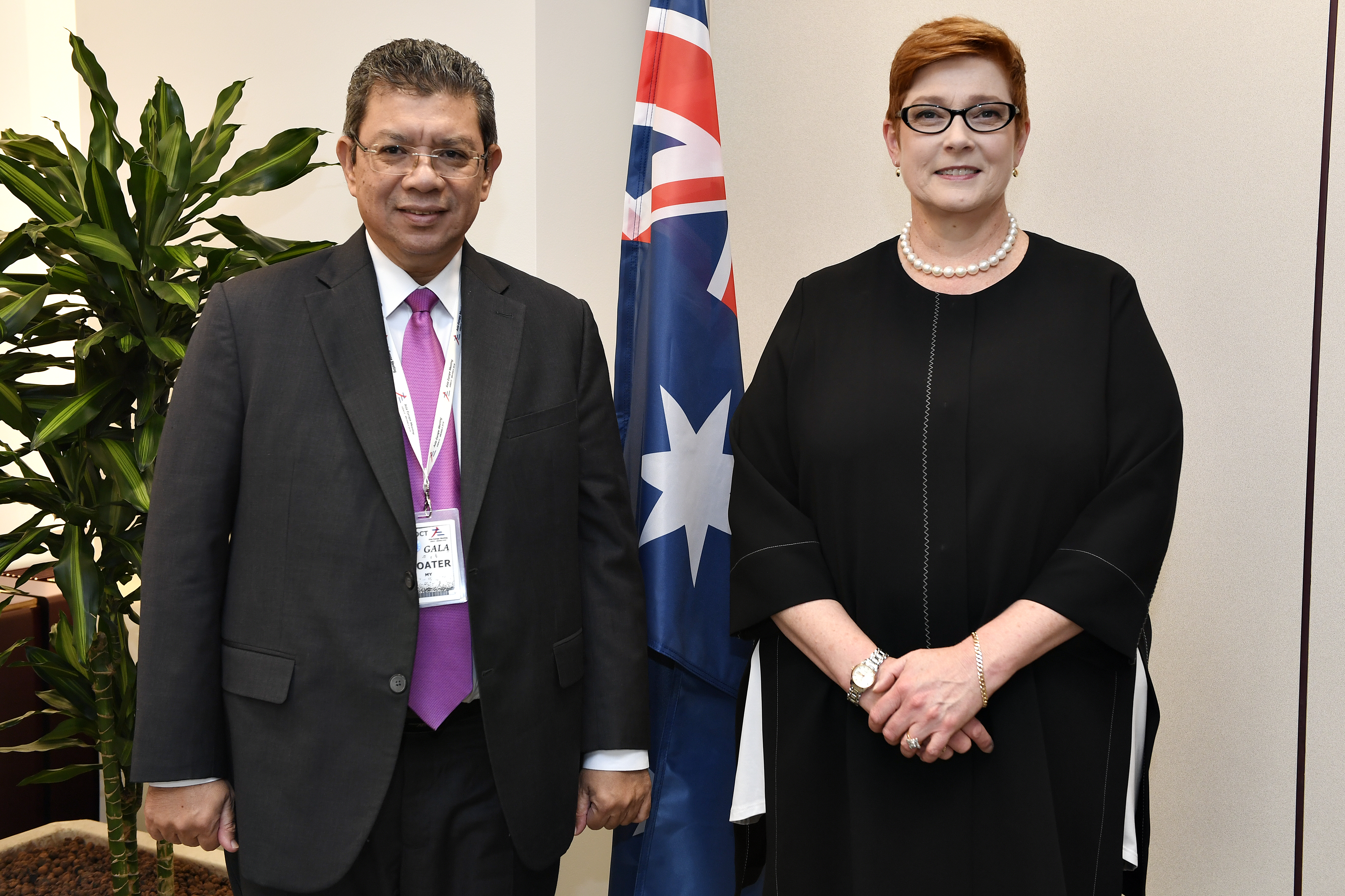 Australian Minister for Foreign Affairs Senator Marise Payne meets Malaysian Foreign Minister Dato' Saifuddin bin Abdullah in the margins of the Asia-Europe Meeting in Brussels. Photo credit: DFAT/Frederic Guerdin.
