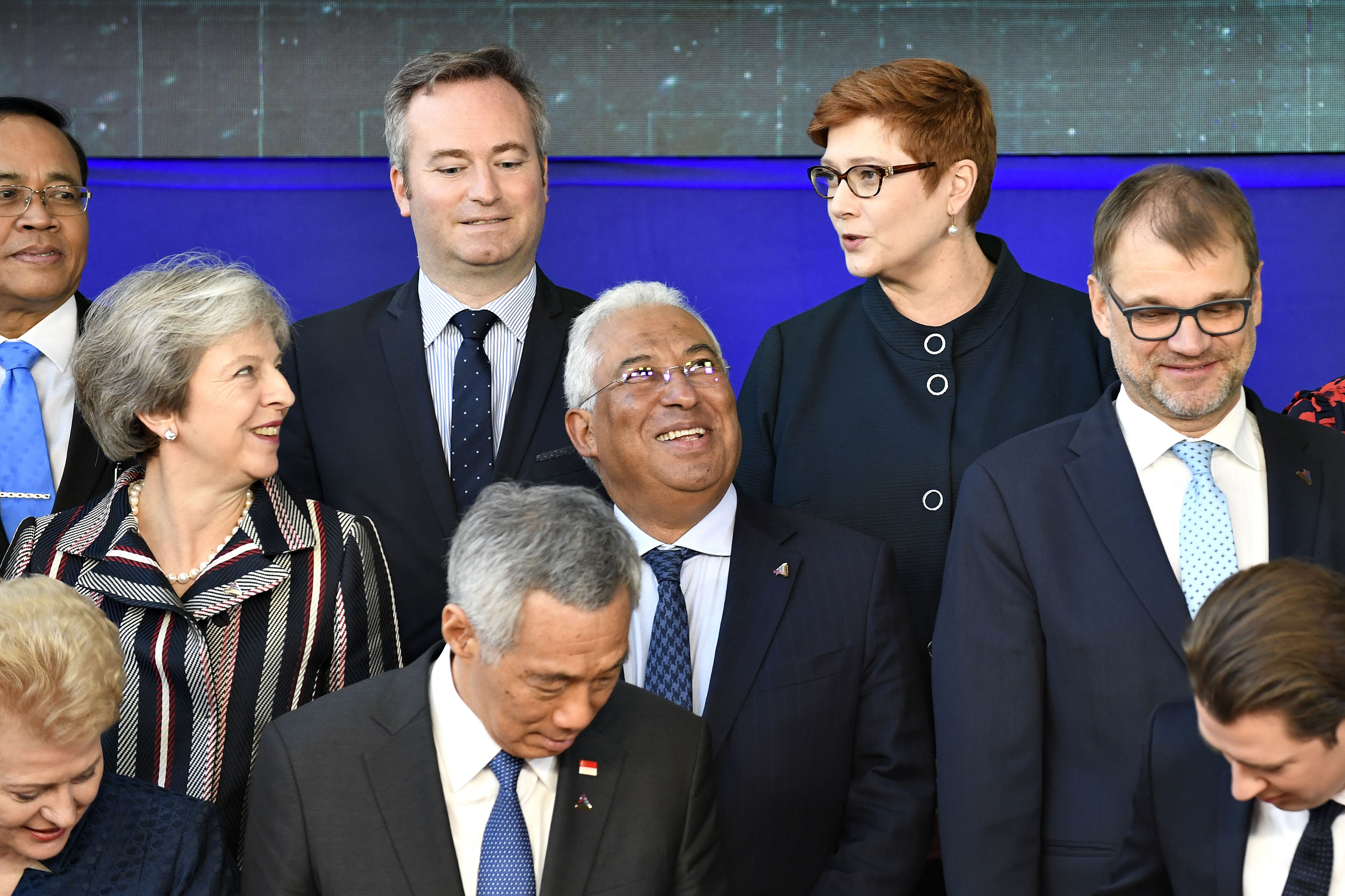 Australian Minister for Foreign Affairs Senator Marise Payne speaking with United Kingdom Prime Minister Theresa May at the ASEM Summit Family Photo in Brussels. Photo credit: DFAT/Frederic Guerdin.