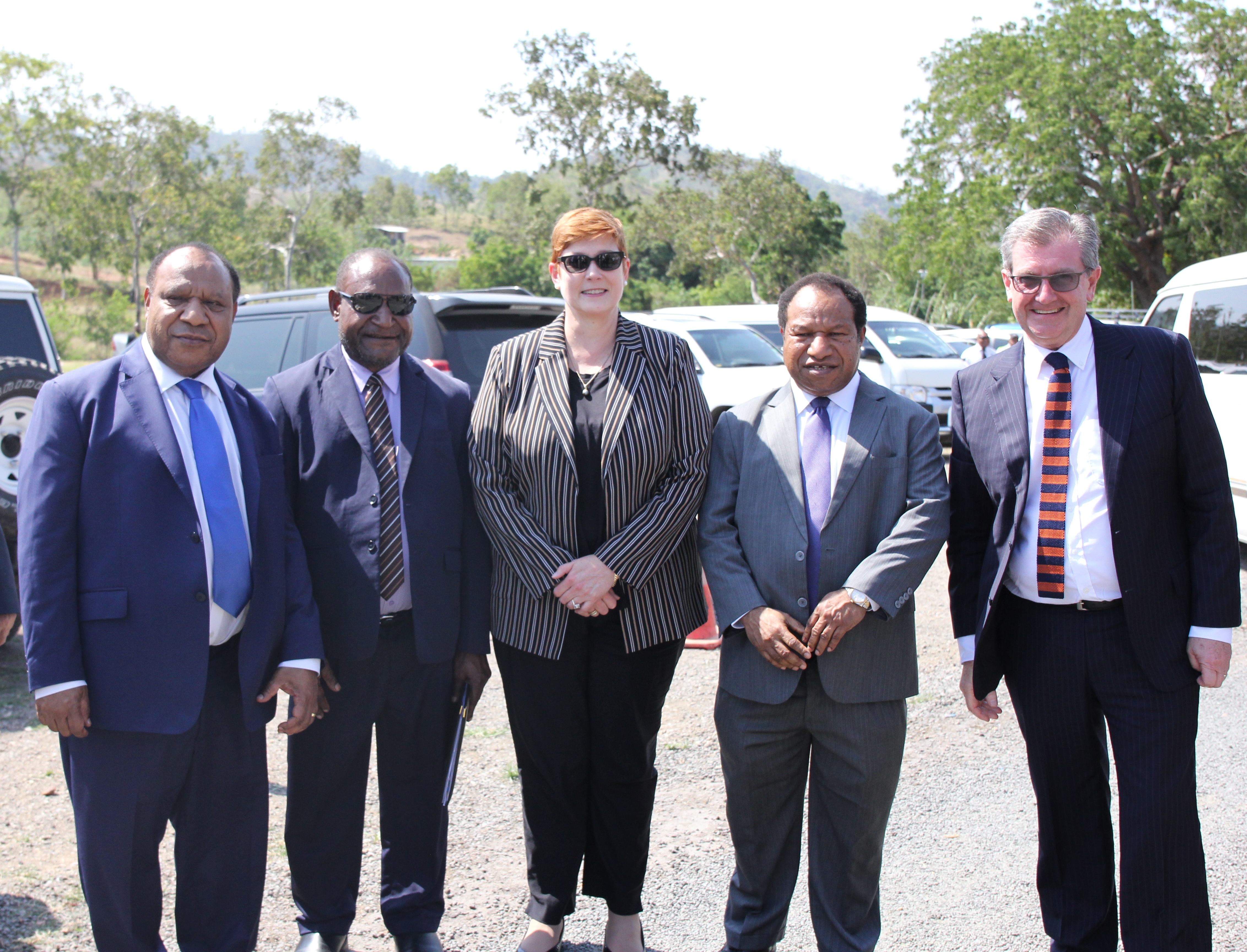 Foreign Minister Marise Payne with (R-L) Hon Pila Niningi, PNG’s Minister for Higher Education, Research, Science and Technology, and Hon Nick Kuman, PNG’s Minister for Education, at the launch of the new National Automotive Training Centre in Port Moresby. Photo credit: DFAT.