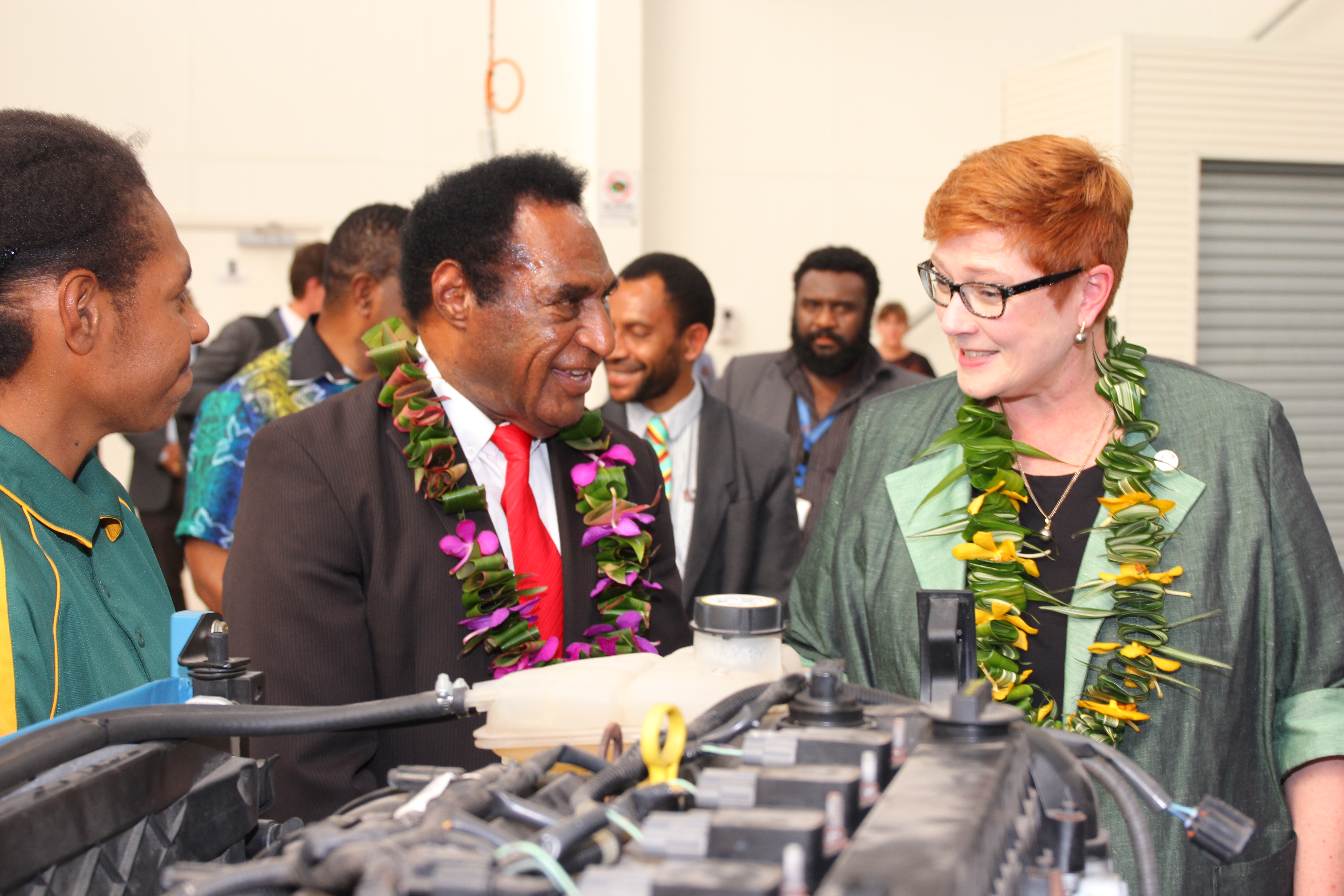 Foreign Minister Marise Payne with Hon Pila Niningi, PNG’s Minister for Higher Education, Research, Science and Technology, at the launch of the new National Automotive Training Centre in Port Moresby. Photo credit: DFAT.