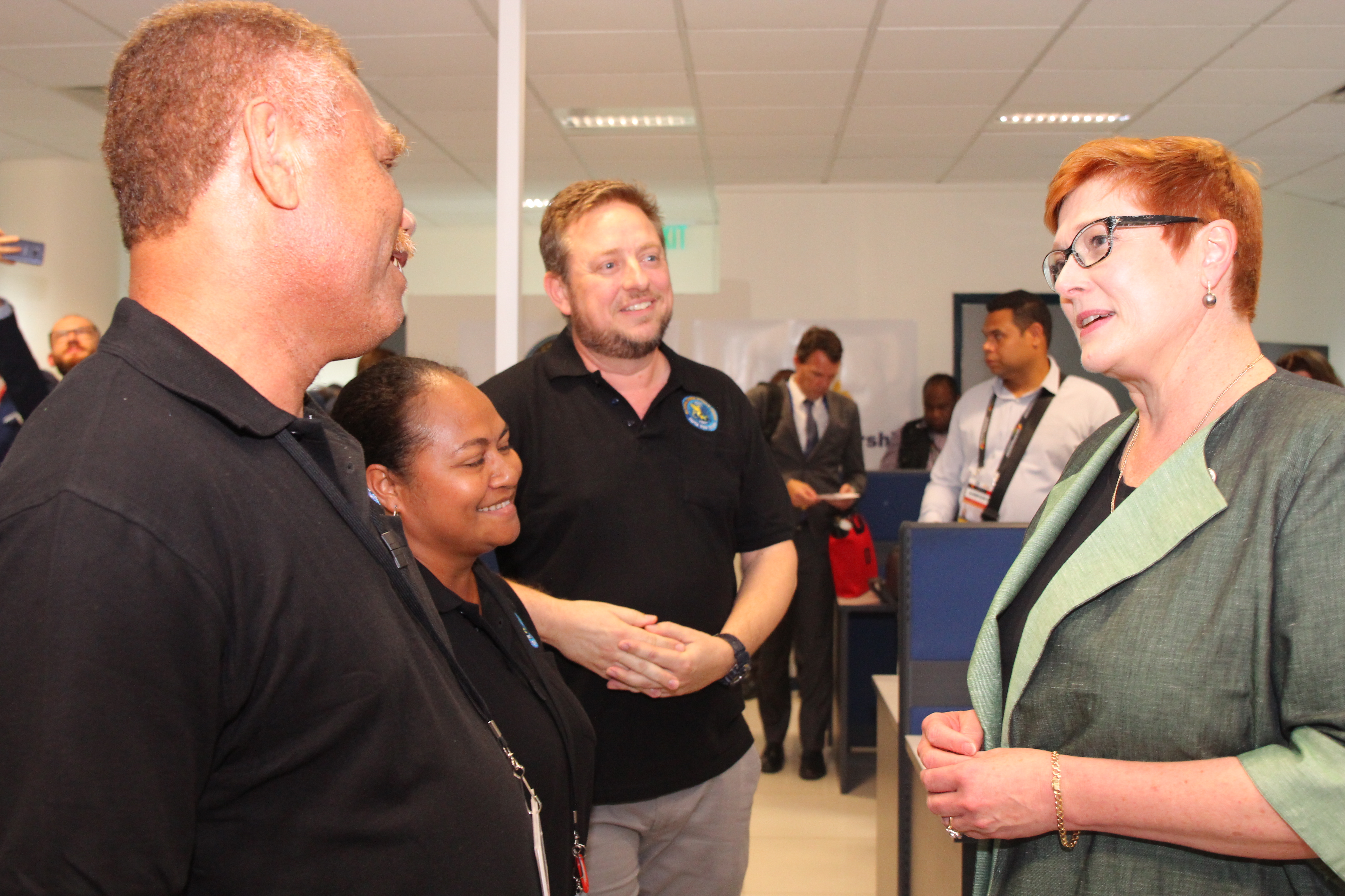 Foreign Minister Marise Payne meets staff of the National Cyber Security Centre following the launch. Photo credit: DFAT.