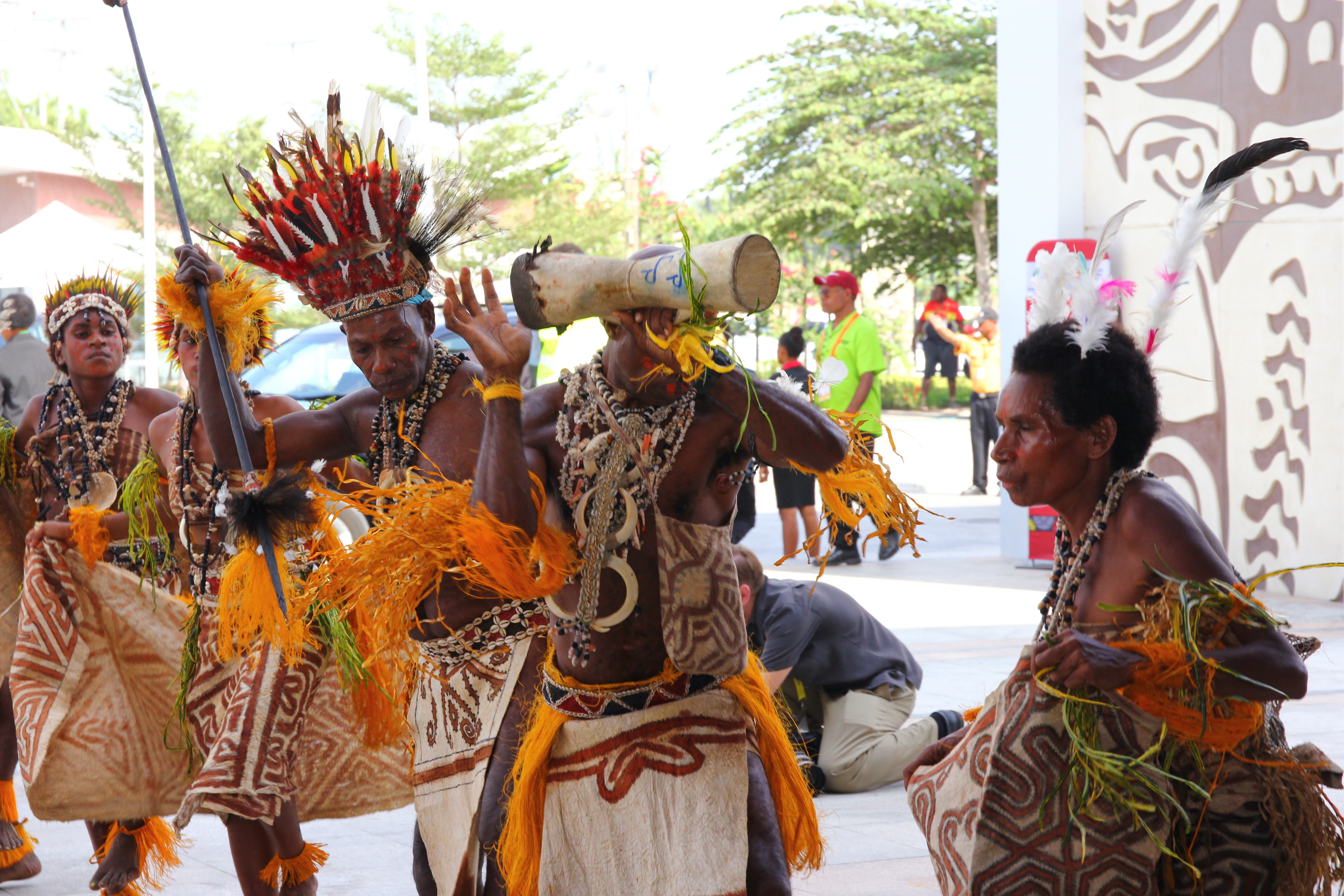 Traditional dancers from the Oro Province welcoming guests at the International Convention Centre in Port Moresby for the 30th APEC Ministerial Meeting. Photo credit: DFAT.