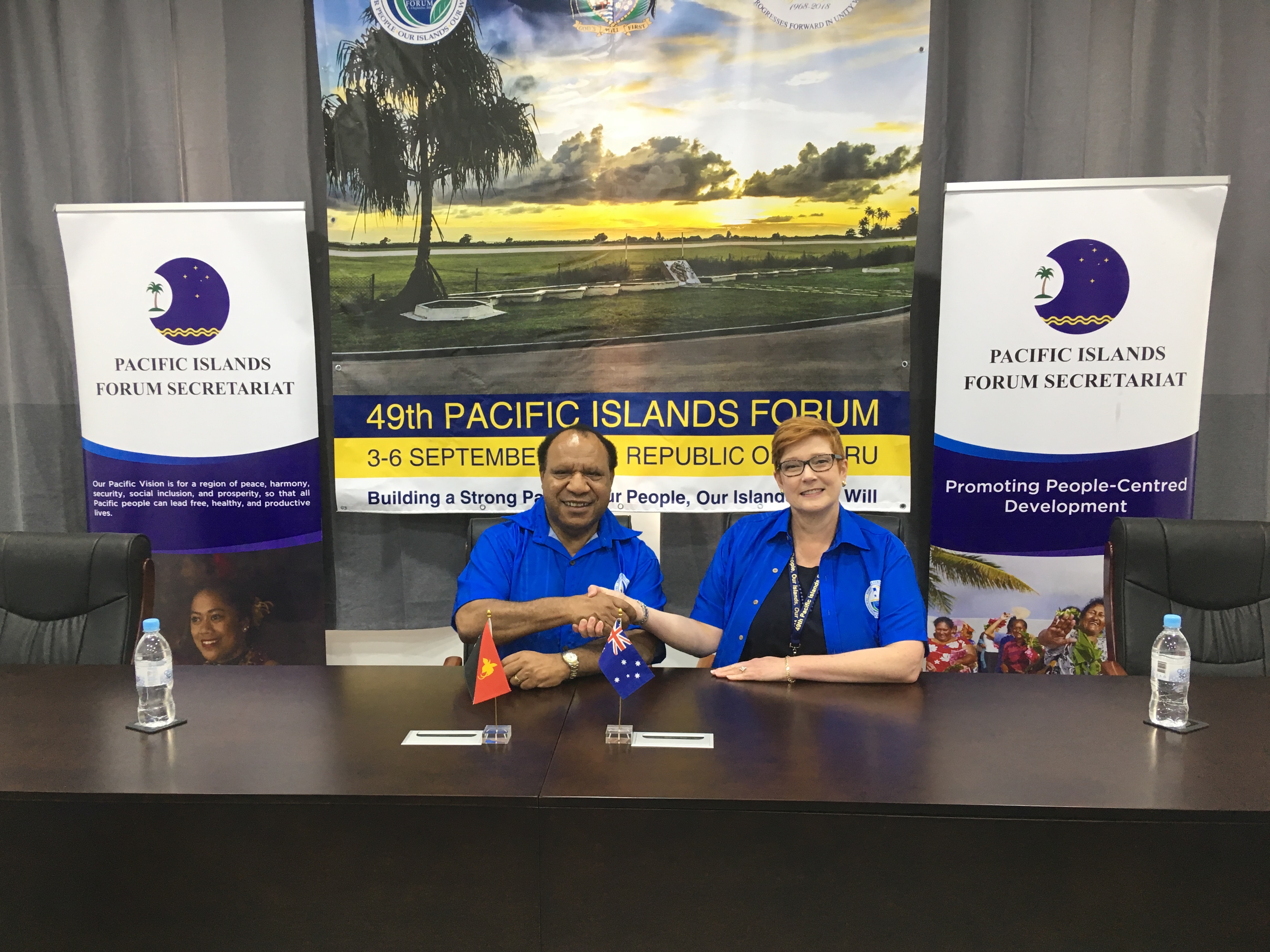 Australian Minister for Foreign Affairs, Senator the Hon Marise Payne meeting Papua New Guinea Minister for Foreign Affairs & Immigration, the Hon Rimbink Pato MP. Photo: Nicholas Flack / DFAT.