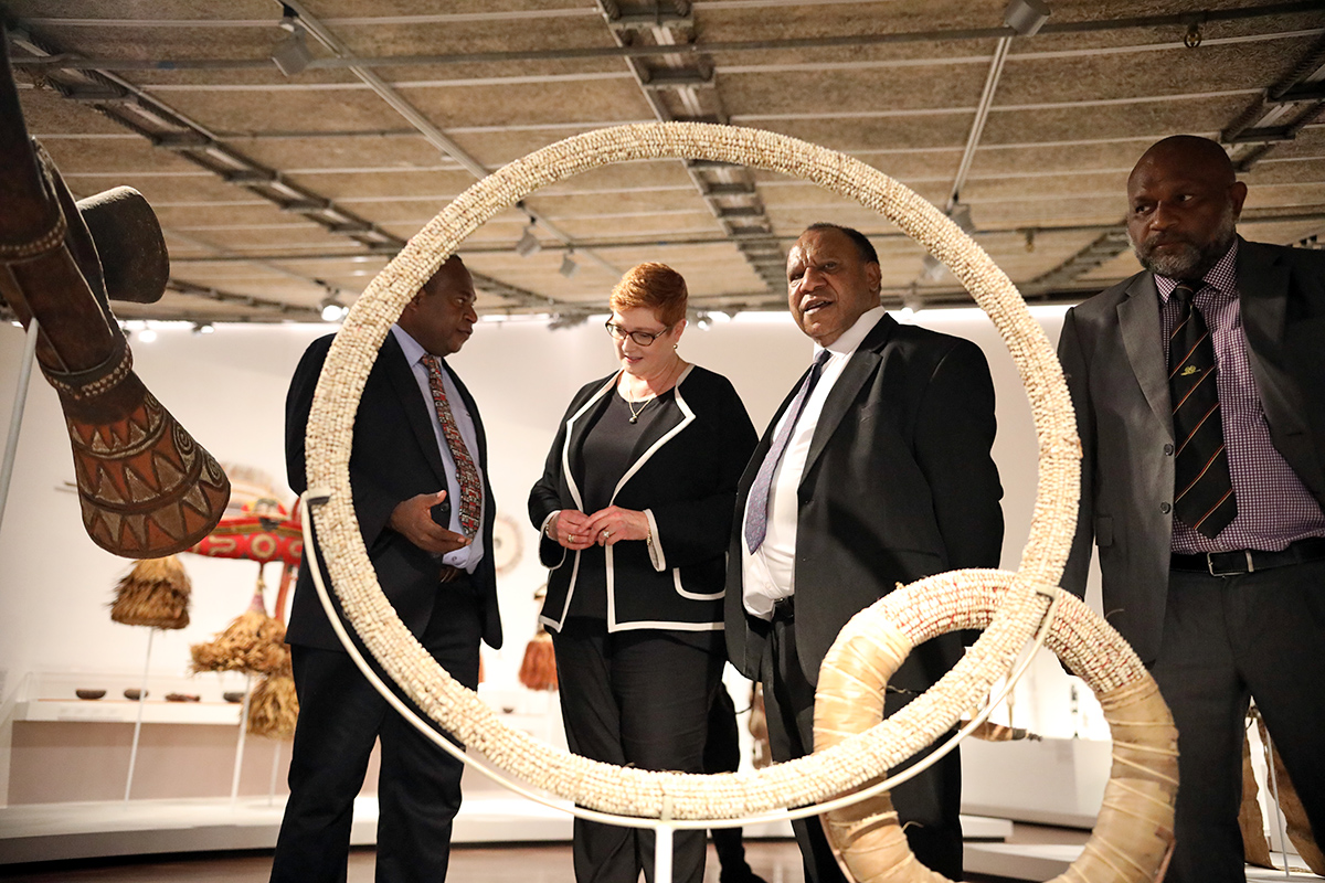 Foreign Minister Marise Payne touring the National Museum & Art Gallery with Director Dr Andrew Moutu, Foreign Affairs Minister Rimbink Pato, and Tourism, Arts and Culture Minister Emil Tammur. Photo credit: DFAT.