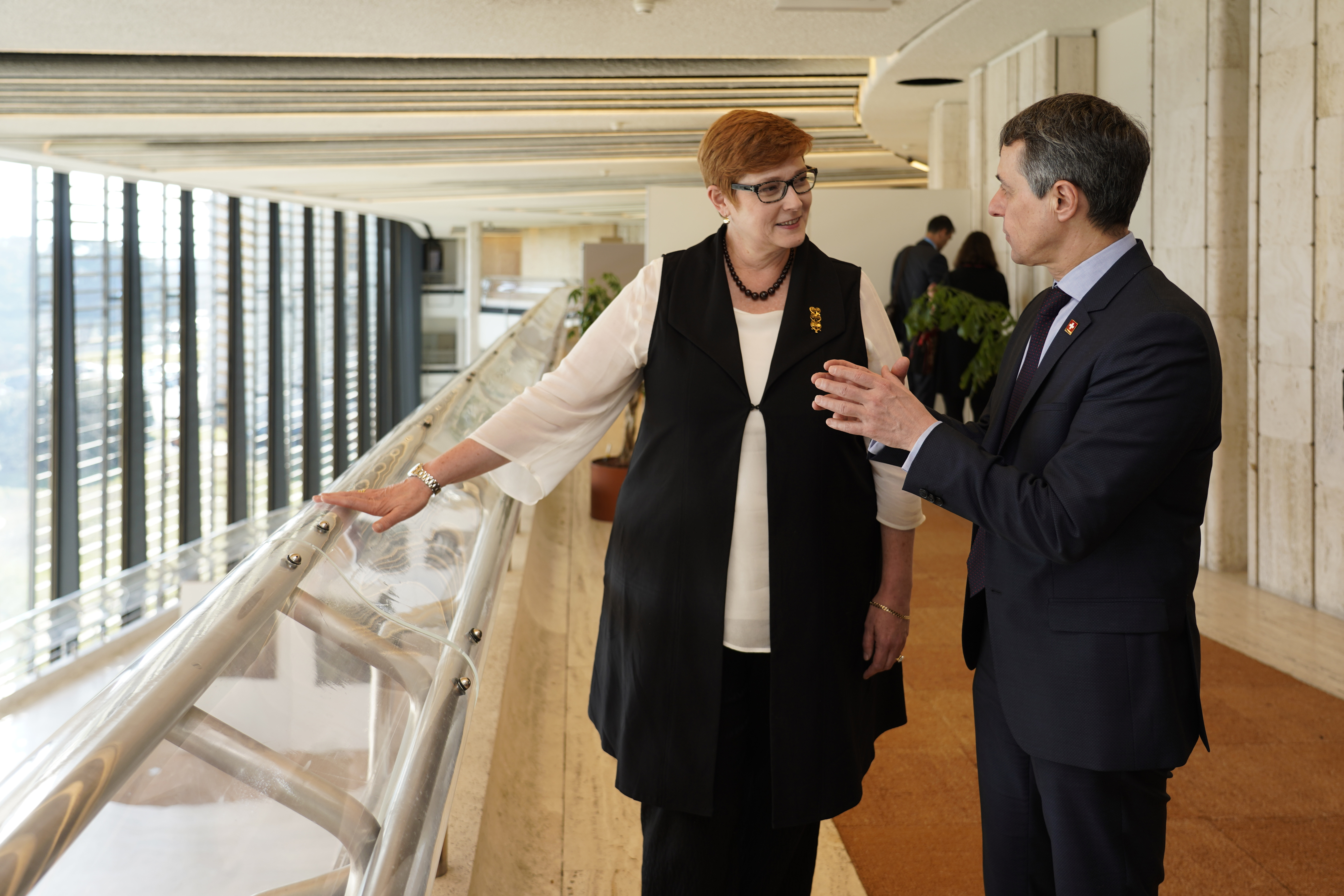 Foreign Minister Payne meets with Swiss Foreign Minister Ignazio Cassis at the Palais des Nations in Geneva during the 40th session of the UN Human Rights Council, 25 February 2019. Photo credit: DFAT/ Christian Bonzon.