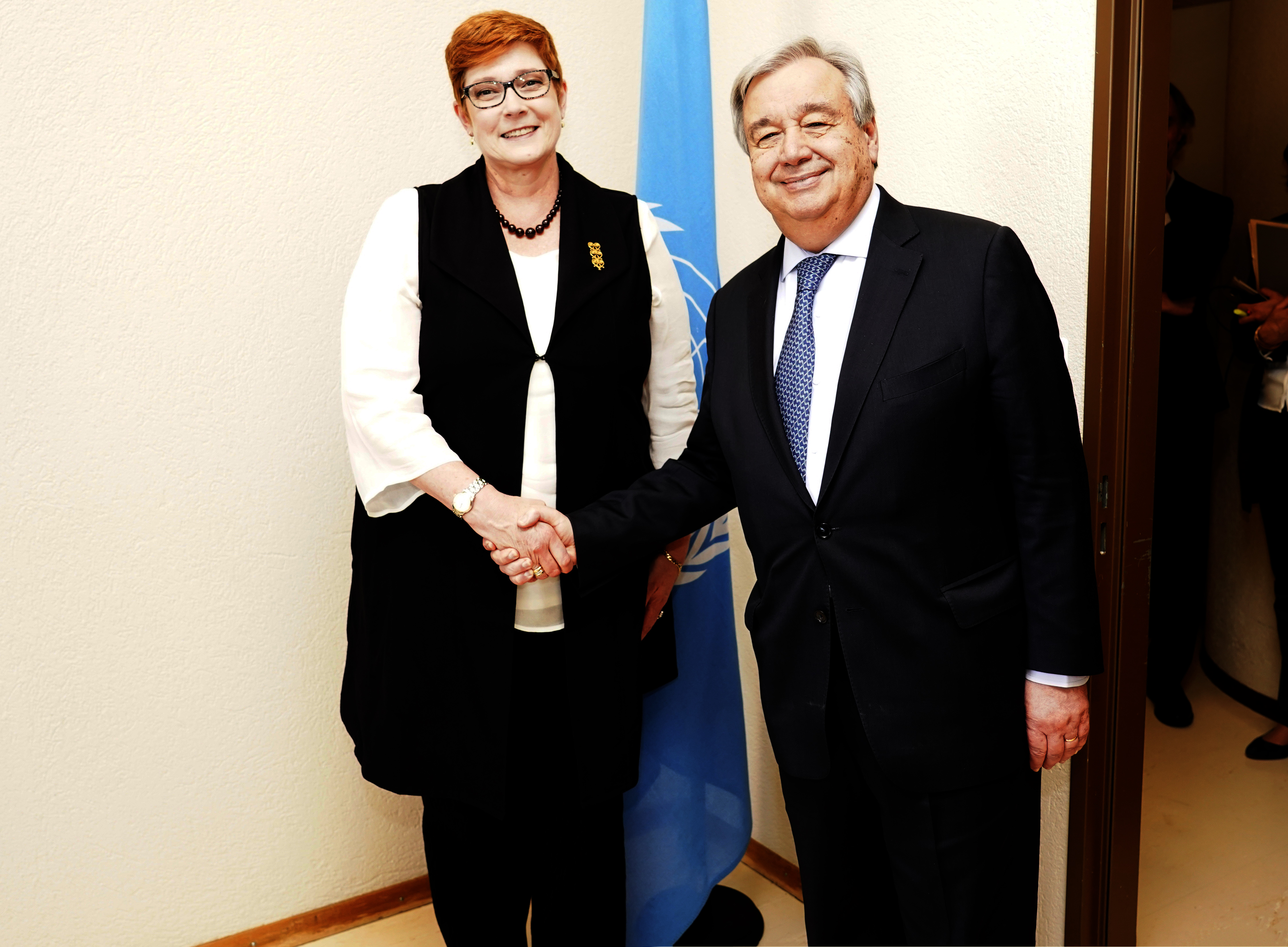Foreign Minister Payne and UN Secretary-General Guterres after their meeting at the Palais des Nations in Geneva during the 40th session of the UN Human Rights Council, 25 February 2019. Photo credit: DFAT/ Christian Bonzon.